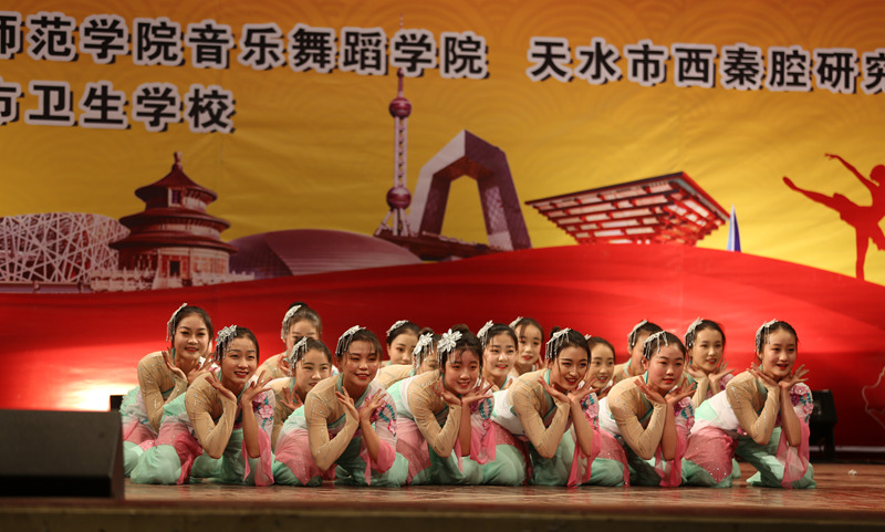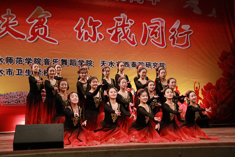 12月12日下午,为纪念改革开放40周年,全面贯彻落实习近平新时代中国特色社会主义思想和党的十九大精神,由天水师范学院音乐舞蹈学院和天水市西秦腔研究院主办,我校承办的“健康扶贫 你我同行”纪念改革开放40周年----高雅艺术走进天水卫校文艺节目在我校演出。天水师范学院音乐舞蹈学院师生和国家一级演员、中国秦腔四小名旦、第28届戏曲“梅花奖”获得者袁丫丫等秦腔演员奉献了一台精彩的文艺节目。第3期乡村医生能力提升培训班全体学员、部分学生代表近1000人观看了演出。