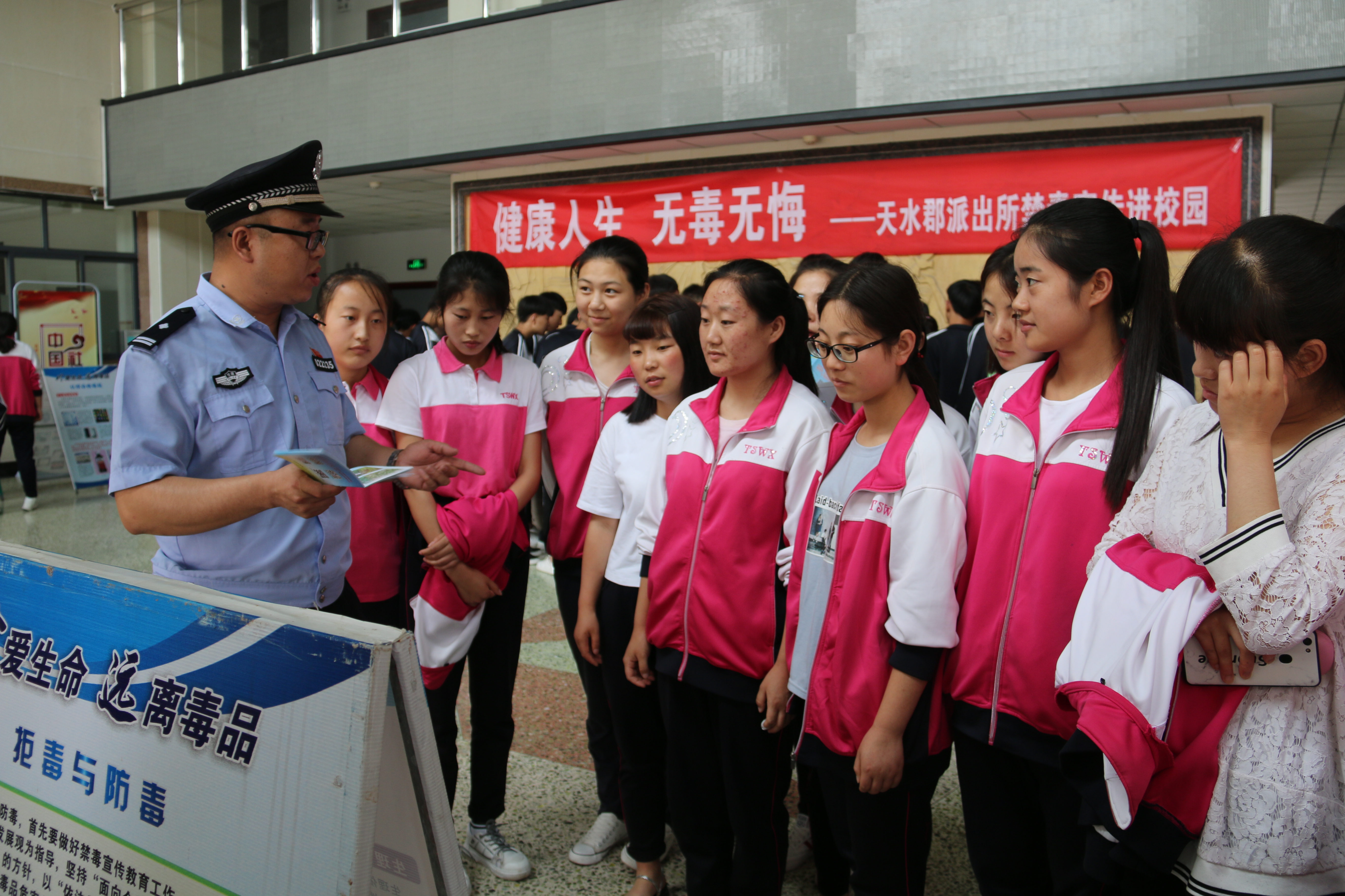 此次禁毒教育专题活动,天水郡派出所出动警力4名、警车1辆,王家磨社区派出宣传干部4名,发放禁毒知识宣传册500余册,切实增强我校学生识毒、防毒、拒毒的意识,增强了自我保护能力,取得了良好的教育效果。