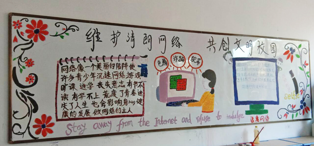 9月24日-9月28日,我校开展了以“维护清朗网络 共创文明校园”为主题的板报设计比赛。