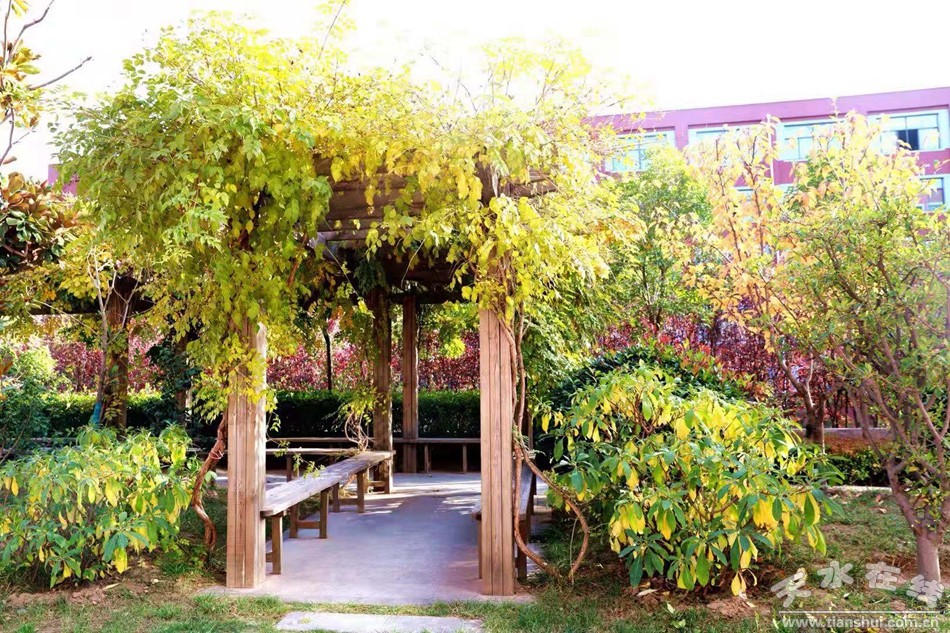在基础设施进一步完善的基础上,为了进一步提升校园文化品位,学校邀请园林公司专业人员进行“园林式”校园绿化规划设计,因地制宜,合理安排,做到乔、灌、花、草相互配置。校园内鲜花盛开,树木枝繁叶茂,碧绿的草坪、芬芳的花树,令人心旷神怡;喷泉鱼池、小桥亭阁,装点了灵动的色彩;花草树木环绕亭台楼阁,奇石景观点缀绿荫花木。漫步校园,鸟语花香,书声琅琅,令人流连忘返。高雅大气的校园文化陶冶着学生情操,潜移默化地培养着学生热爱生命、珍惜生活的高尚品格。2017年学校被市政府授予“园林式单位”荣誉称号。