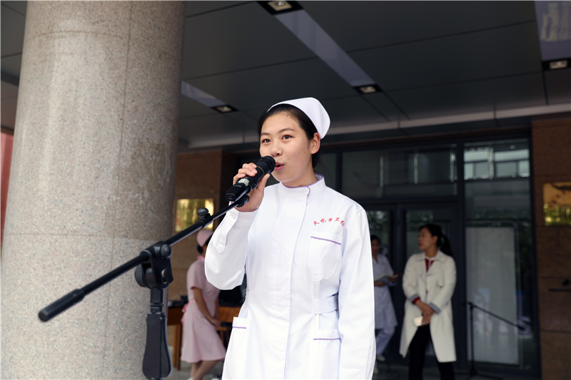 来自2016级护理5班赵芸芸同学代表所有护生发言。表示当步入卫校大门时,就朝着一个共同的目标在不懈努力;当戴上燕尾帽后,将继续发扬“人道、博爱、奉献”的南丁格尔精神,把青春奉献给自己钟爱的护理事业。