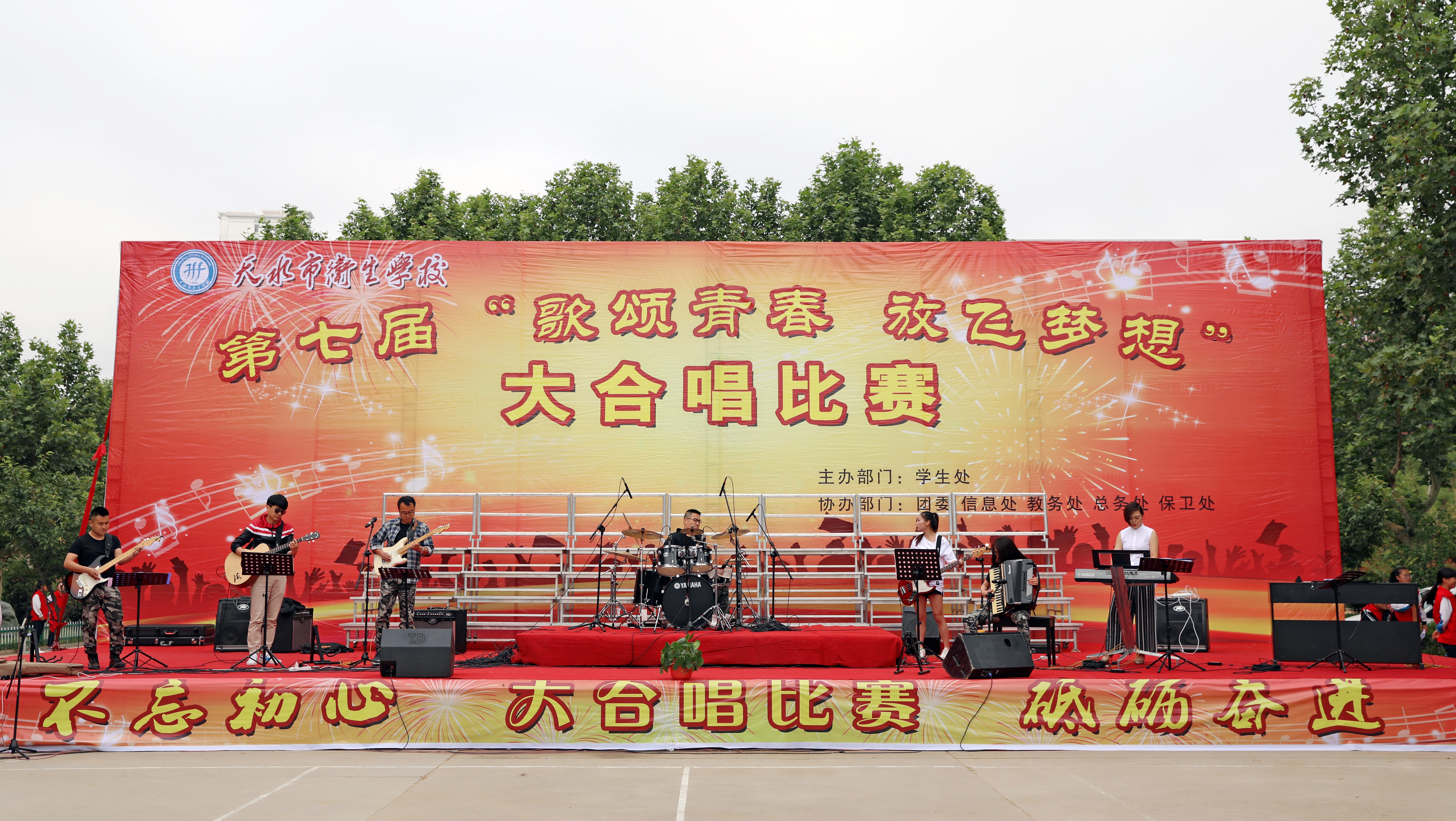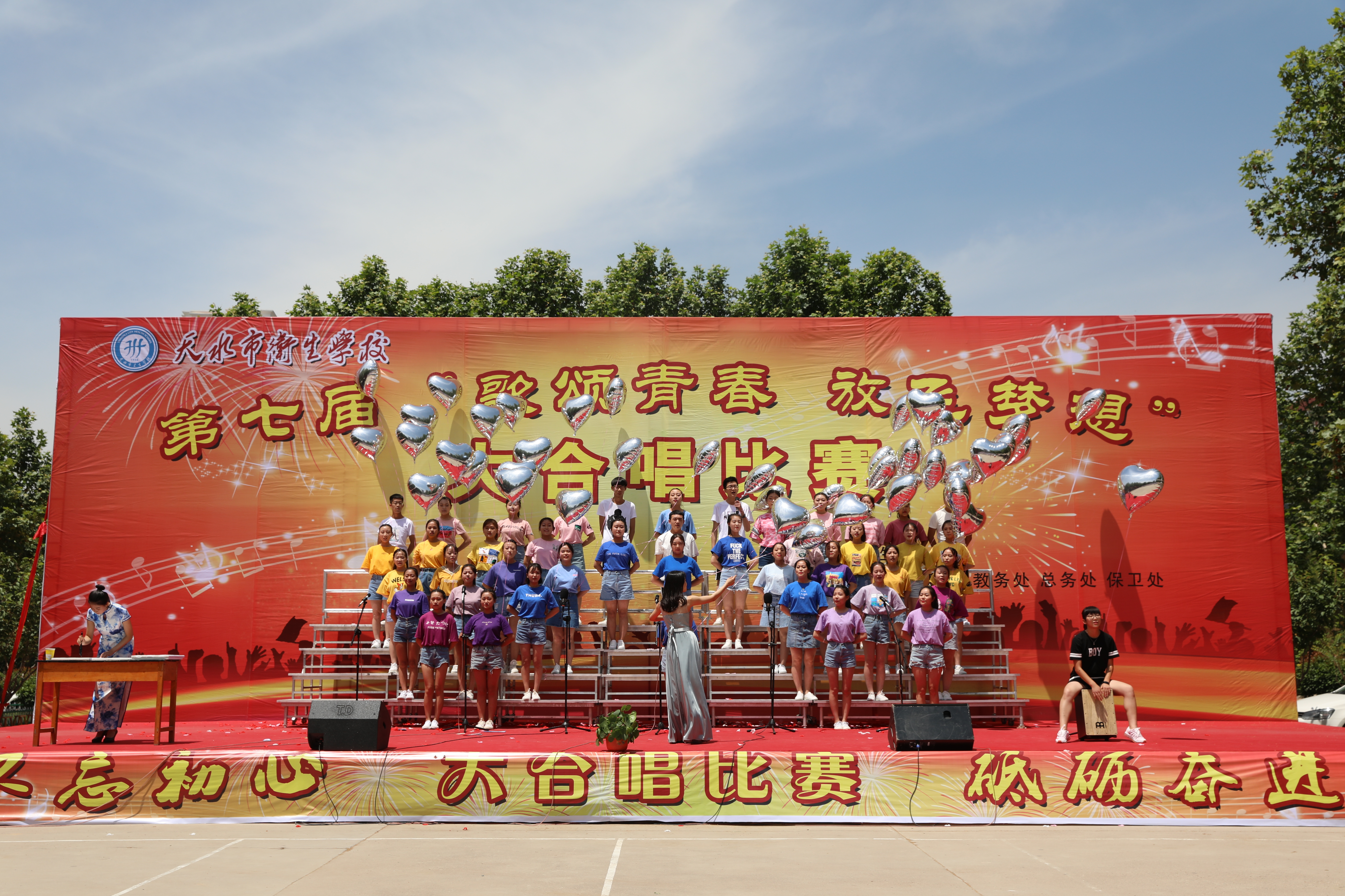 2018年6月9日上午,我校第七届“歌颂青春、放飞梦想”大合唱比赛在风光旖旎、绿树成荫的校园隆重举行。校领导毛如君、潘慧琴、宋继凯、宋向前、吕志宏、刘春生出席了活动,部分中层干部担任了大赛评委。