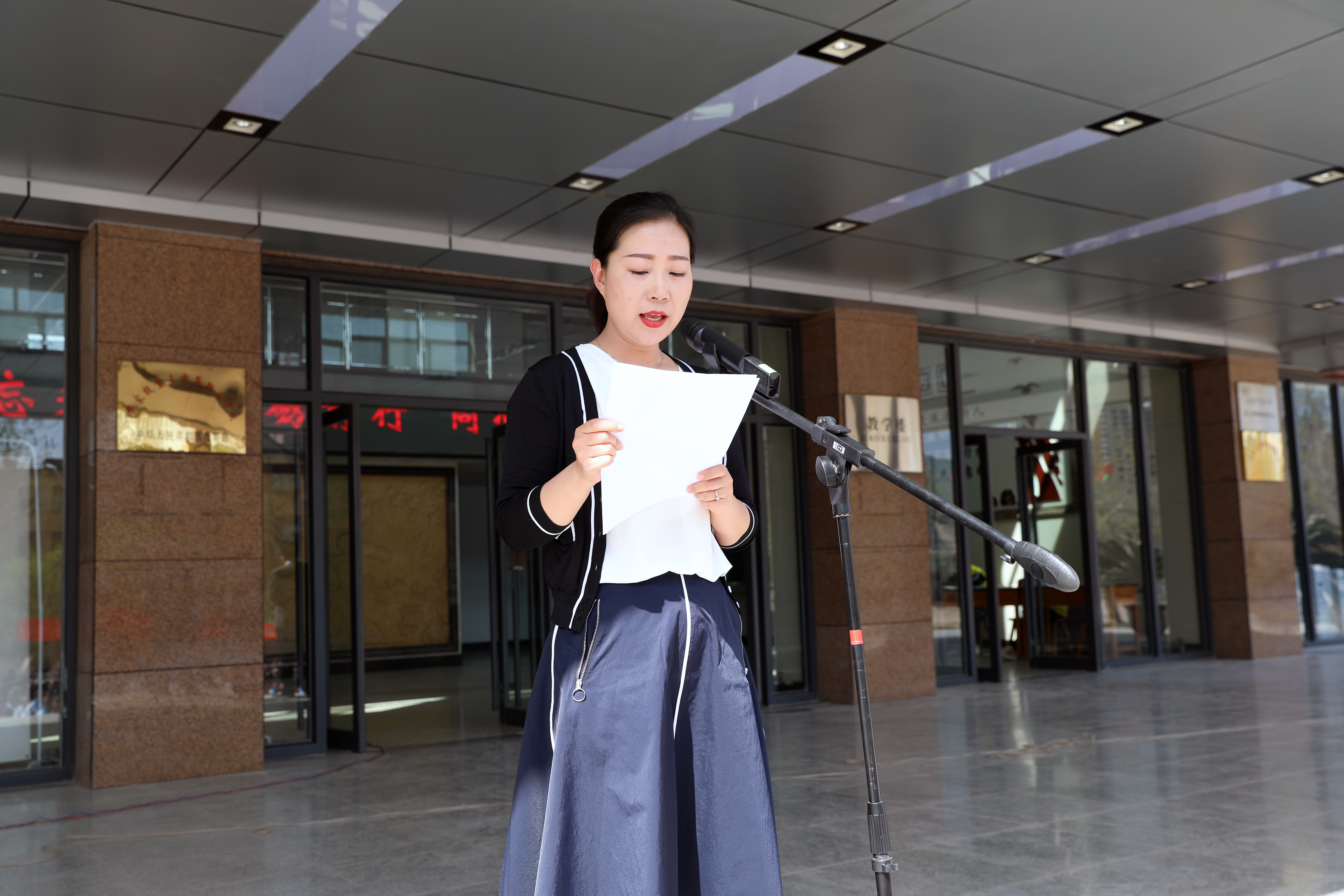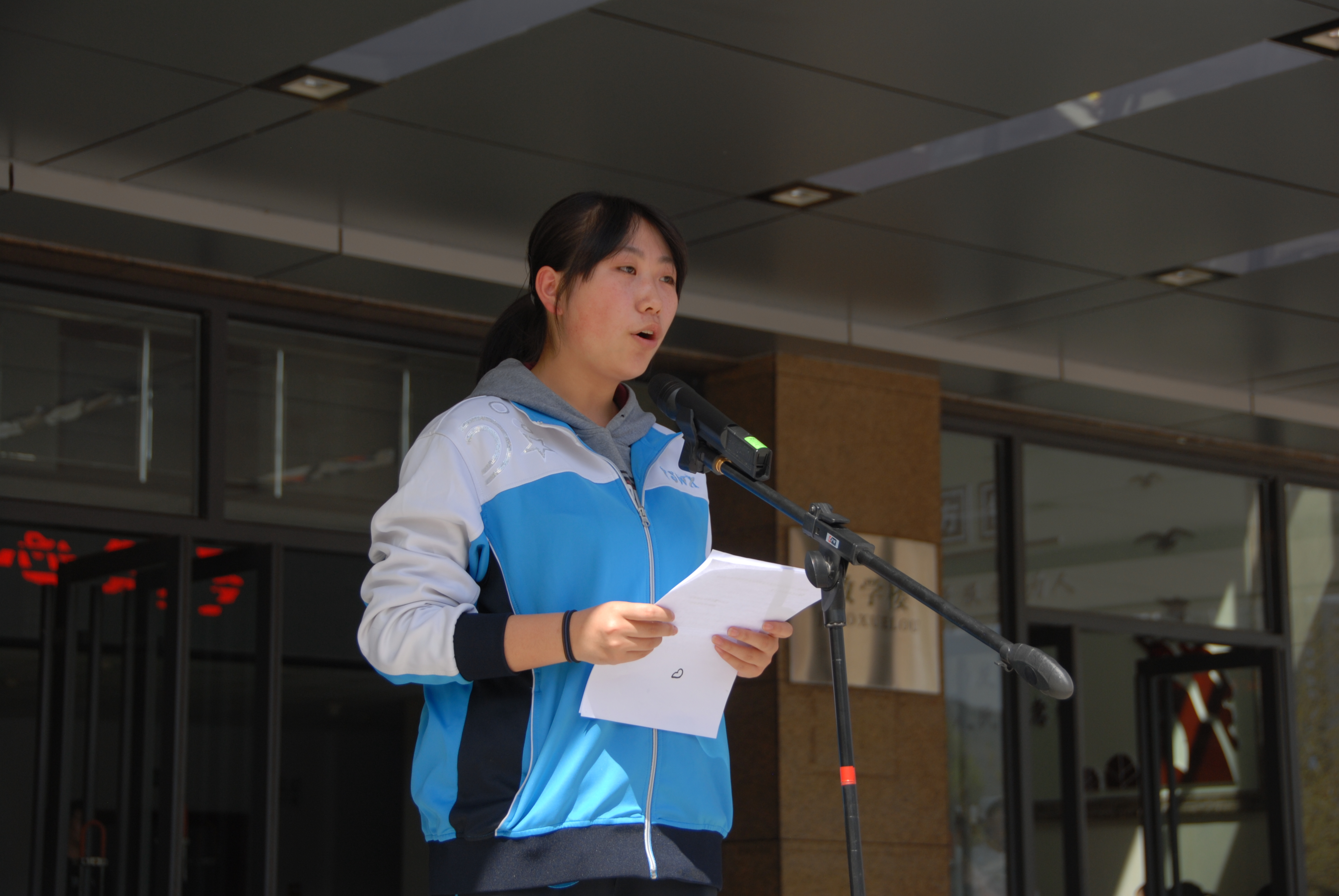 校团委书记孙文婷在讲话中要求同学们一定要不辱使命,从点滴做起,认真学习科学文化知识,努力提高专业技能,用智慧的头脑、强健的体魄,同心共筑美好中国梦。