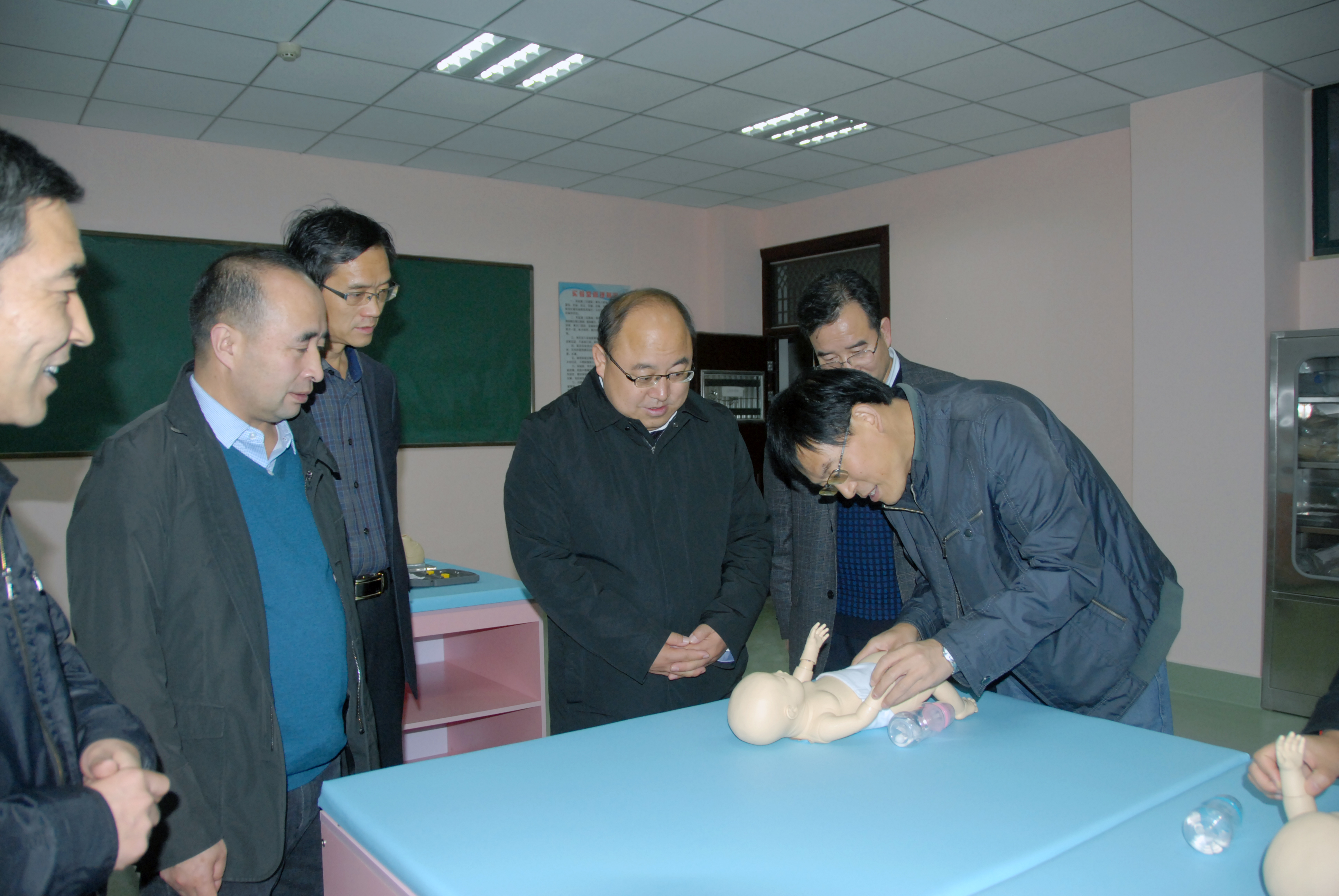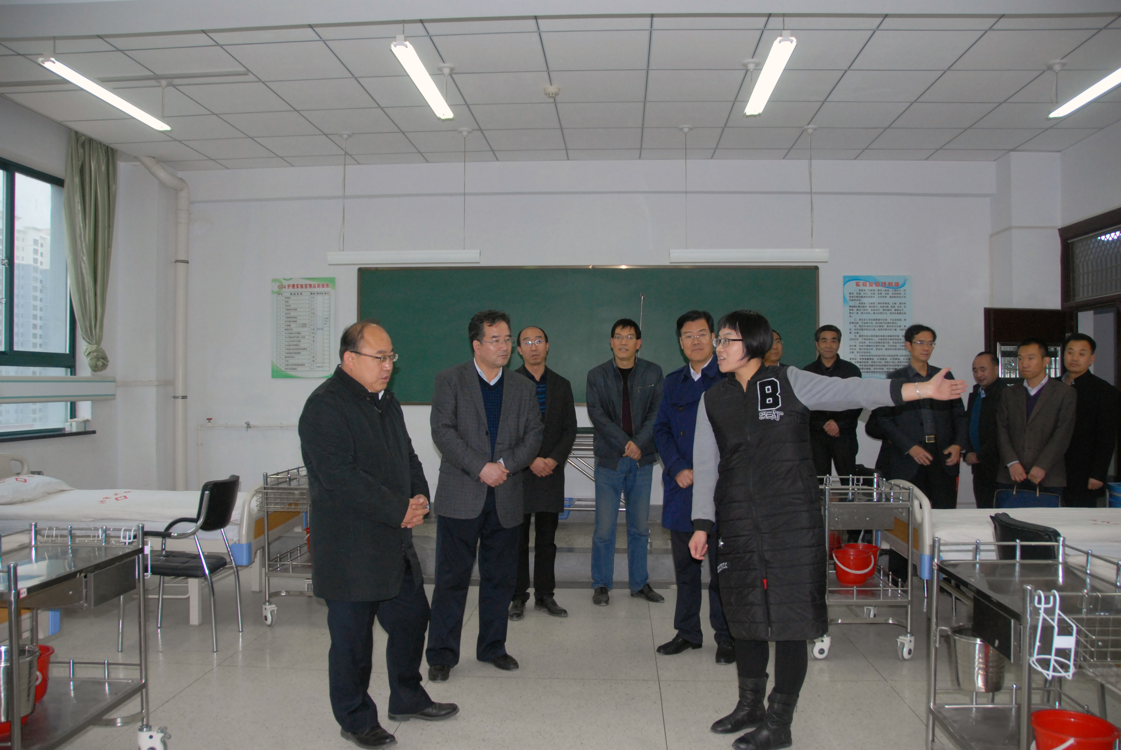 宫辉一行实地察看了我校学生餐厅、公寓和教学楼、实训楼等基础设施,详细了解了学校管理运行情况。宫市长和公寓管理员进行了交流,并鼓励其作为学校基层管理人员,在加强管理的同时,主要做好对学生的服务工作。宫市长一行在实训楼饶有兴趣地参观了护理实训中心、心电图室、重要标本馆、儿科实训室,并对实验室建设做了充分肯定。