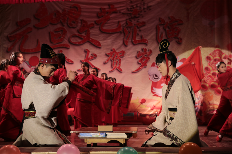整场晚会欢快、喜庆、高潮不断,既营造出了欢乐祥和、喜庆的节日气氛,又从不同的层面、不同的艺术视角展示了我校教师和同学们蒸蒸日上的幸福生活,也充分展现出我校抢抓机遇,改革创新,攻坚克难,追赶跨越的壮丽场景。