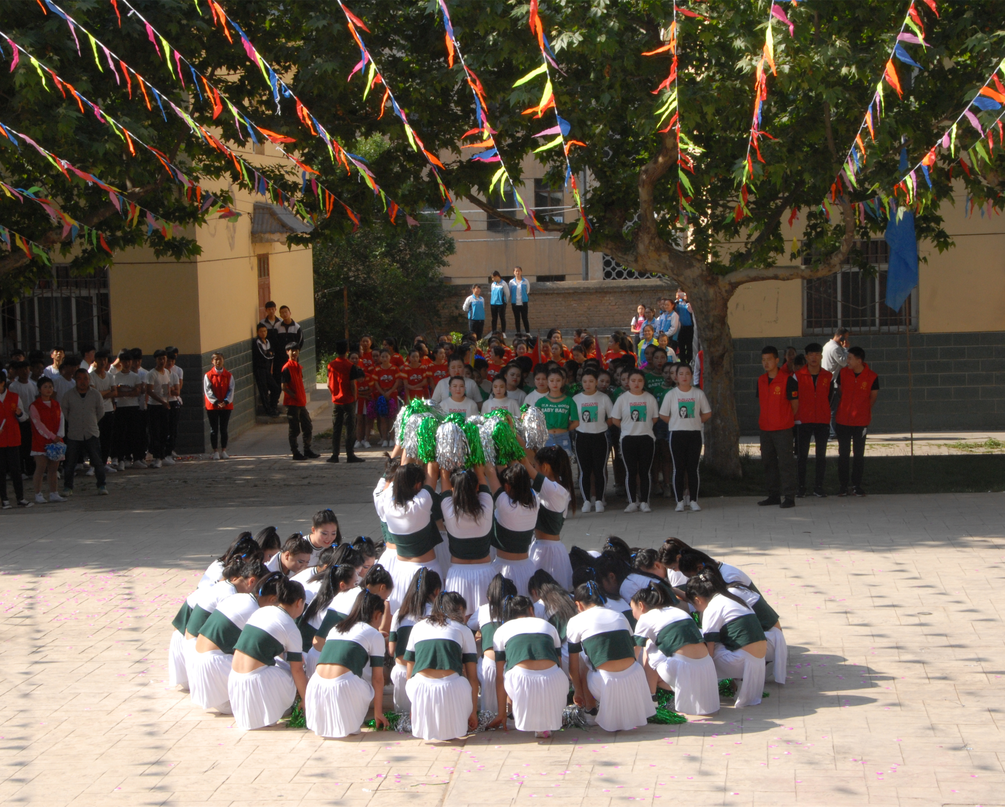 比赛现场,参赛选手身着时尚靓丽的服饰依次登台表演,用跳跃的步伐、优美的舞姿配合激扬的旋律将校园渲染得热闹非凡。同学们的表演有模有样,动作规范到位,在婉约柔美与英武潇洒间自由转换,充分展现着我校学生们昂扬奋进、阳光自信的精神风貌。