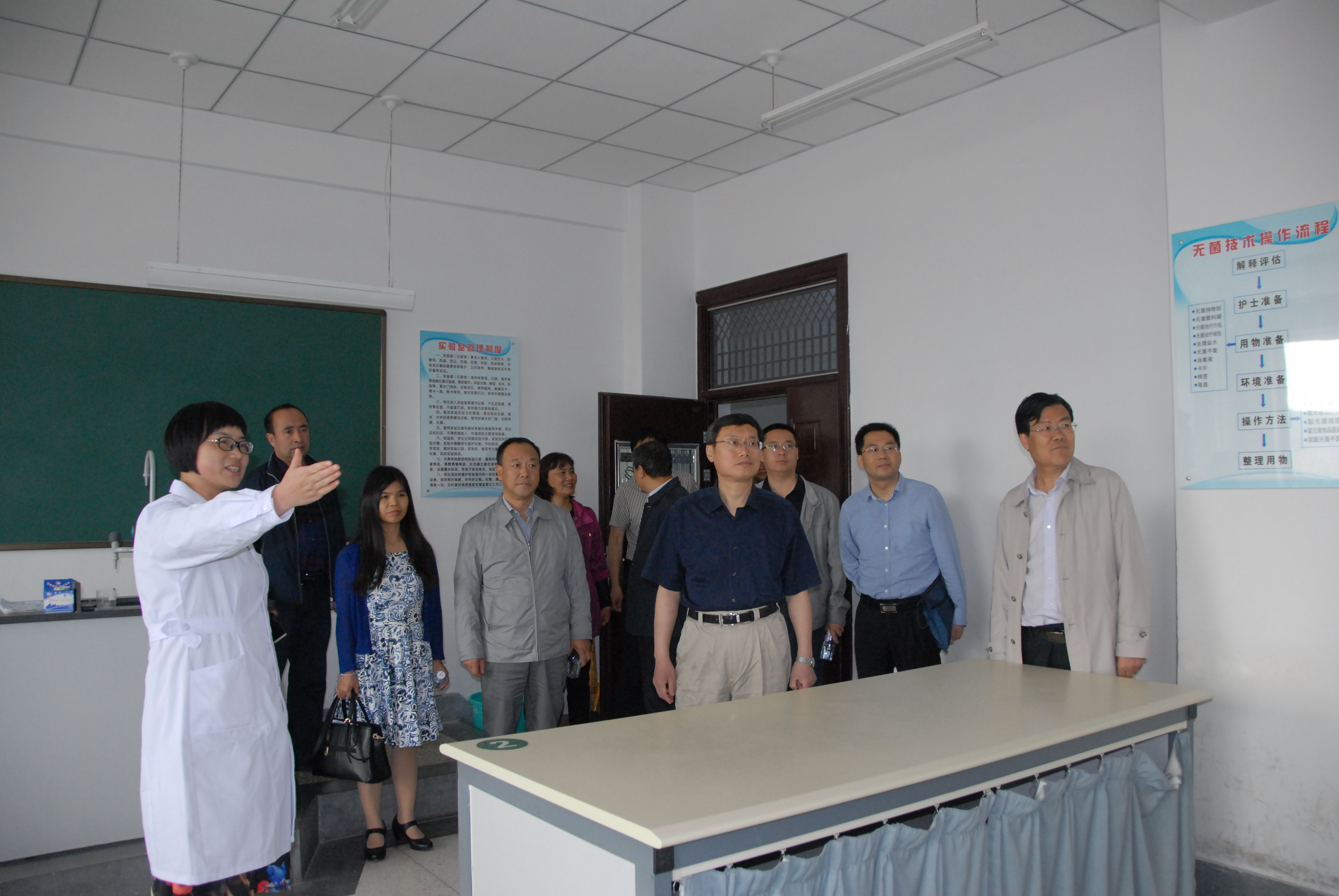 5月17日下午,教育部职业学校学生实习管理联合检查组来我校进行职业学校学生实习管理检查。在省教育厅职成处副处长张天福、市教育局局长伏金祥的陪同下,华北科技学院副院长汪永高、教育部职成司中职处处长邬跃等专家对我校近三年中职学生临床实习管理工作进行专项检查。