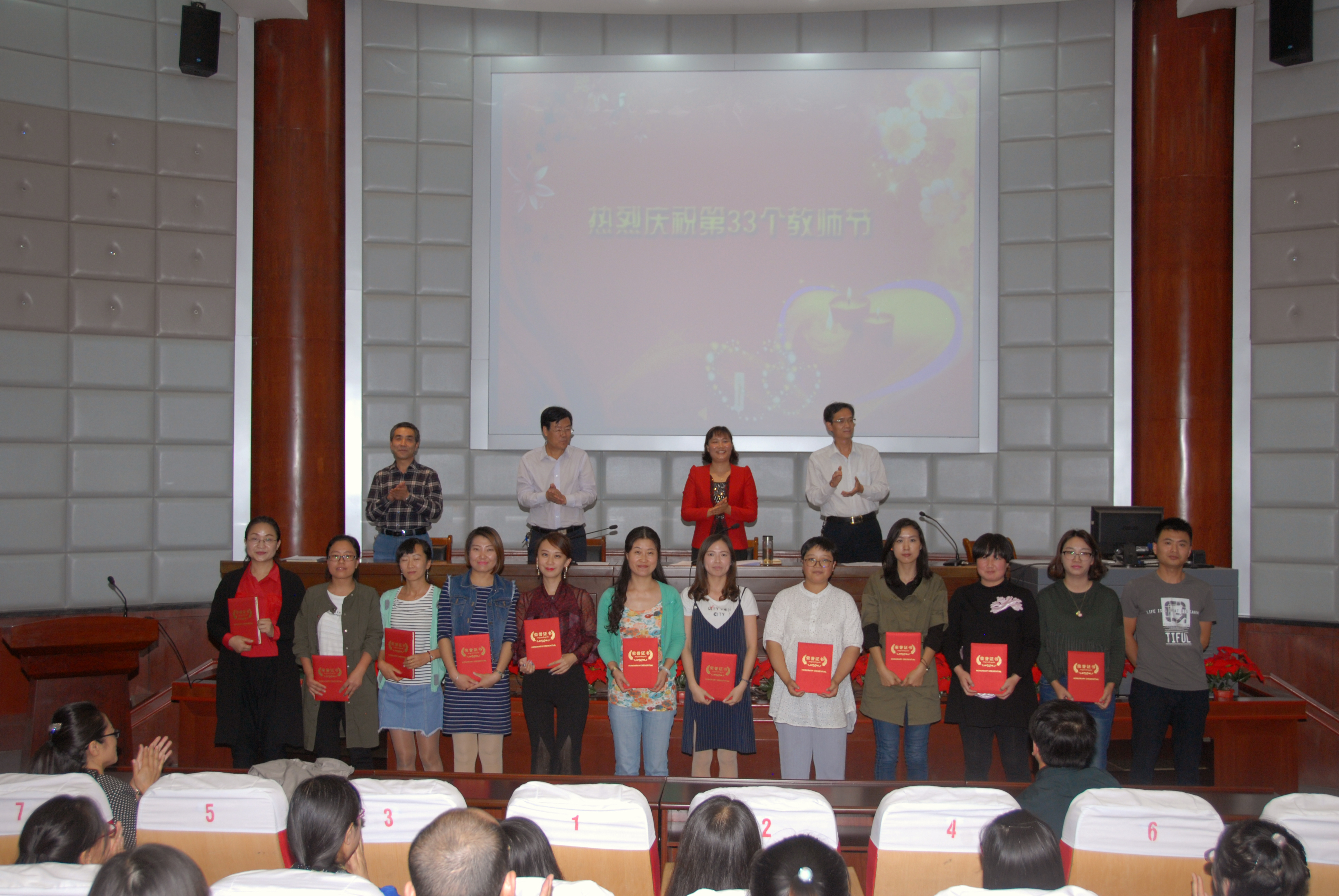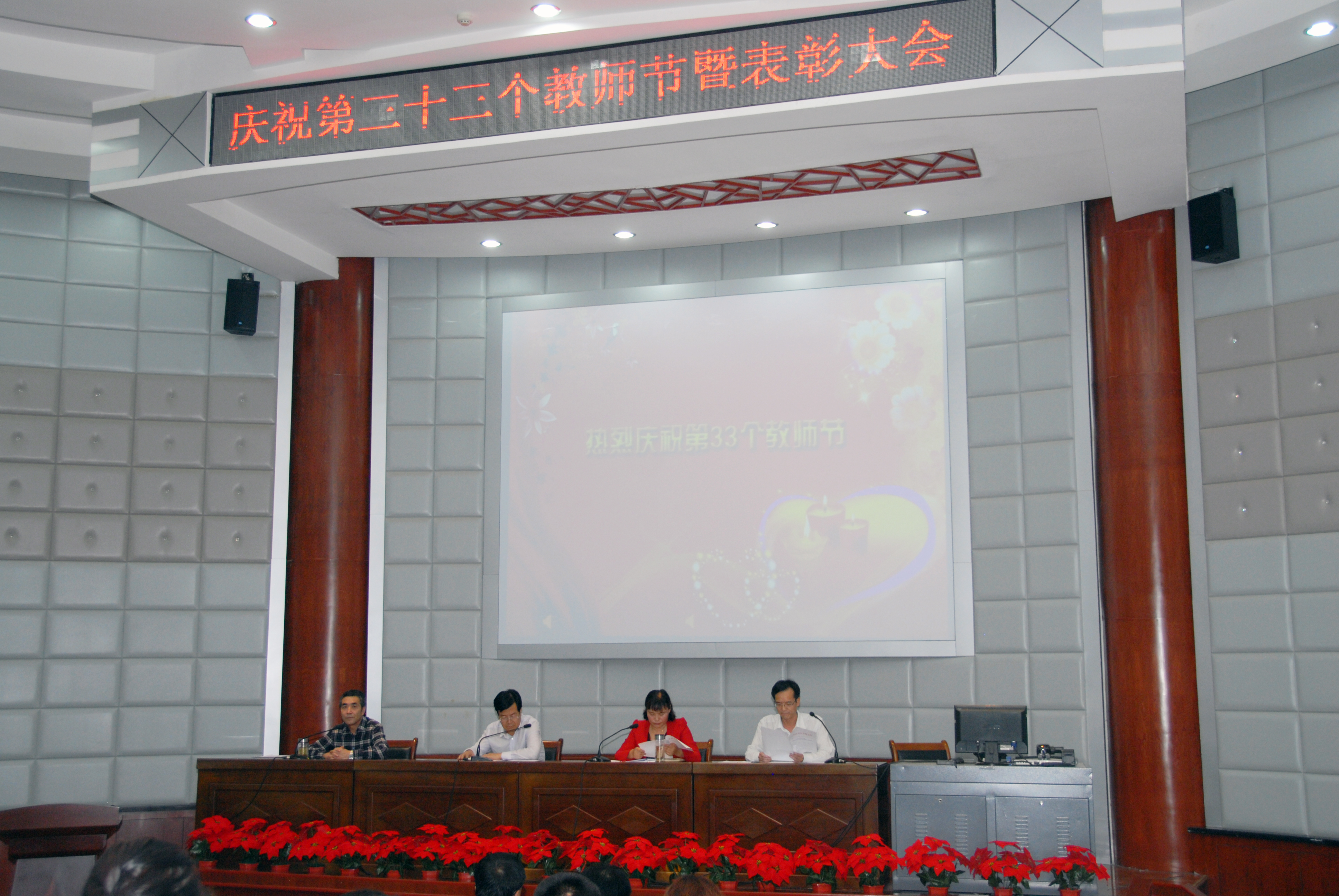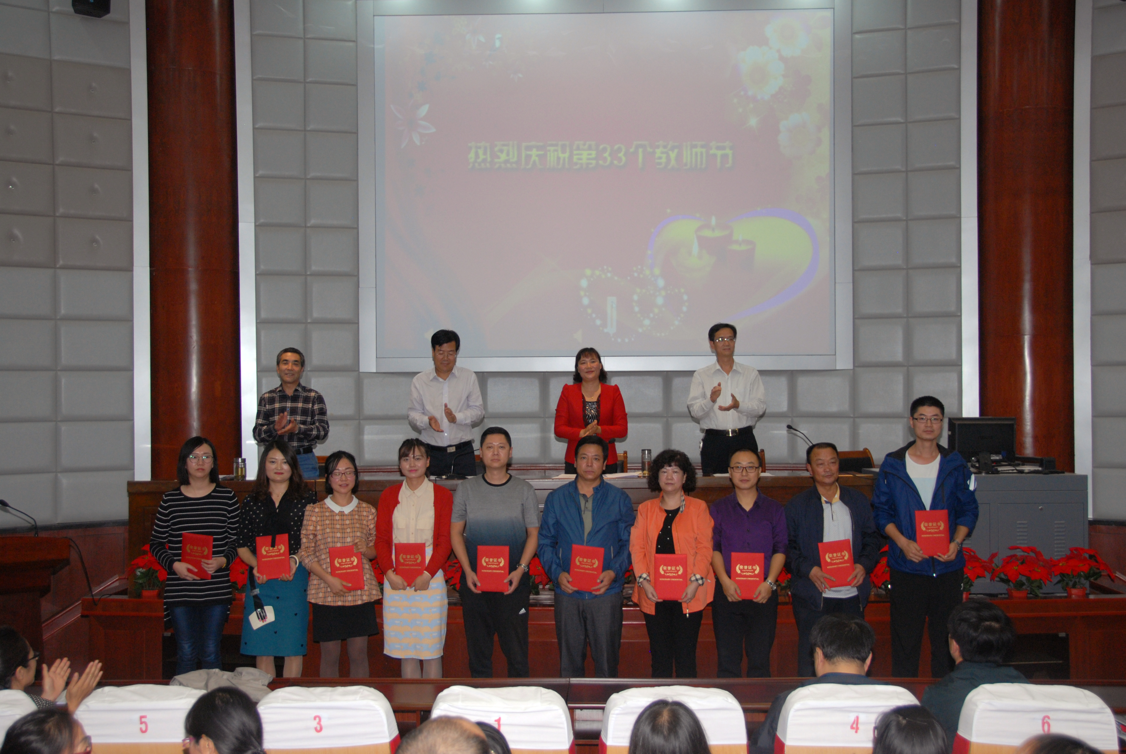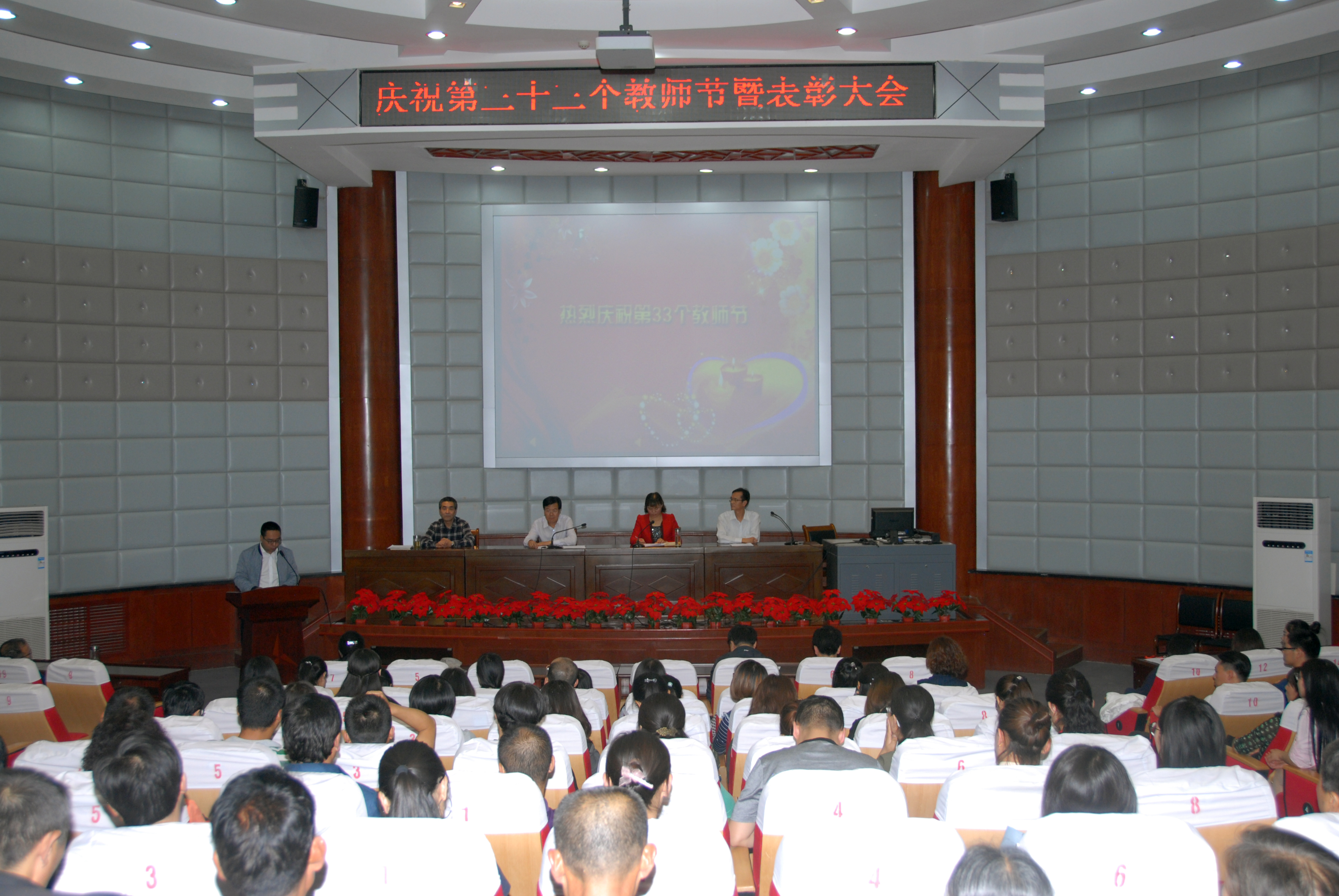 9月8日下午,学校在学术报告厅隆重举行了庆祝第三十三个教师节暨表彰大会。会议由党委书记潘慧琴同志主持,全体教职工参加了大会。