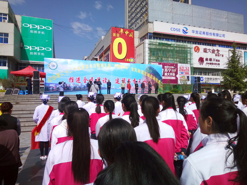 4月23日,我校320余名学生在天水市龙城广场参加了由市委宣传部和市文化局牵头举办的第五届“书香天水”全民阅读工作启动仪式。