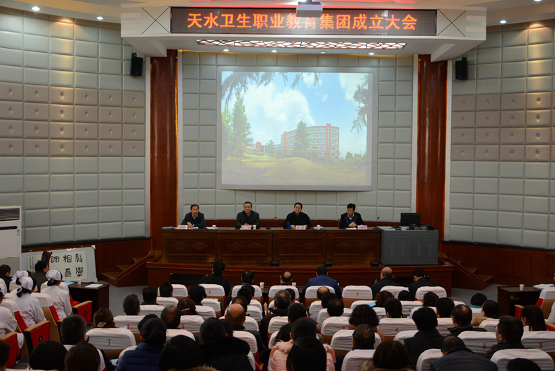 12月25日,天水卫生职业教育集团成立大会在我校学术报告厅隆重召开。市卫生计生委党委书记、主任蒲朝晖,市教育局副局长伏平,市一院、市中西医结合医院、市三院及天水岐黄药业有限责任公司等26家成员单位的主要负责同志和联系人出席了大会。