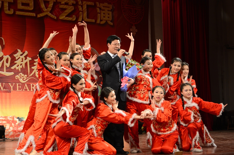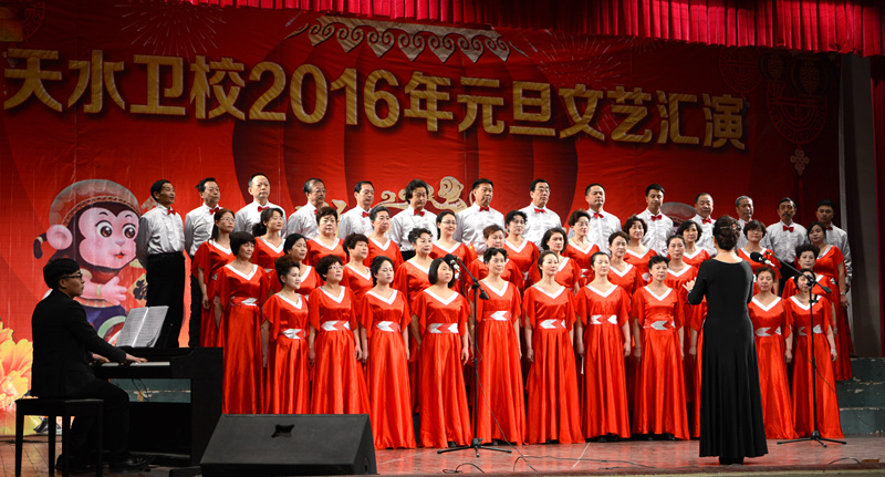 演出在天水市爱乐合唱团的大合唱《大漠之夜》和《共筑中国梦》中拉开了序幕,欢快喜悦的曲调充满着新春的气息。演出中,校长毛如君也为在座的师生倾情演唱,一曲《甘肃老家》使得台下掌声与喝彩声汇聚成欢乐的海洋,将全场的气氛推向了高潮。