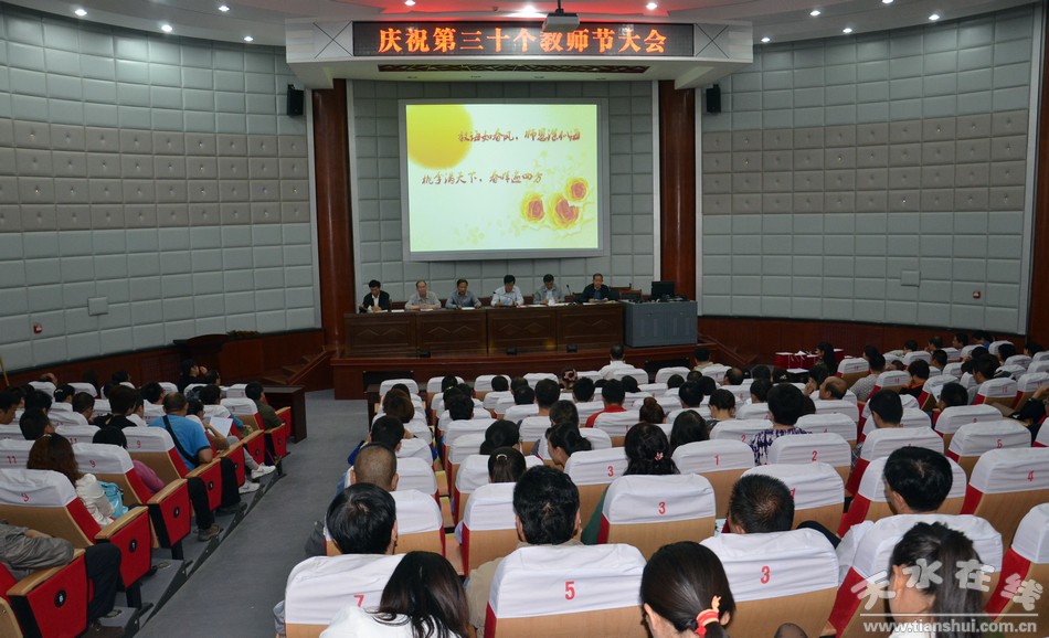 9月10日下午4时,学校庆祝第三十个教师节暨表彰大会在多功能厅举行,大会由校党委书记王引平主持,校领导和全体教职员工200余人参加了会议并观看了全面展现学校近年来建设与发展成果的电视专题片《而今迈步从头越——天水卫校建设发展纪实》。