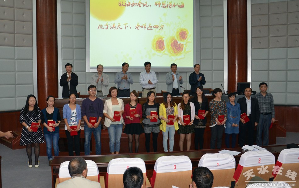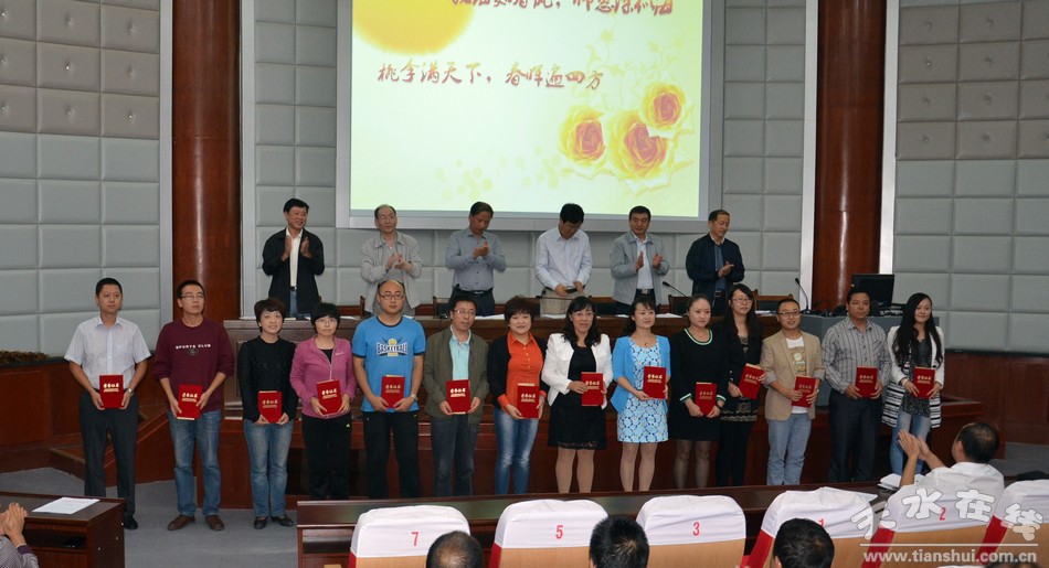 会议在嘹亮的国歌声中拉开帷幕,王引平书记向全体教职员工表达了节日的祝福,并勉励教师们爱岗敬业,努力工作,为学校教育事业贡献自己的力量。会上表彰了2013-2014年教科研成果奖和荣获校级以上荣誉称号人员,以及学校2013-2014学年师德模范、优秀教师、优秀班主任和先进工作者。