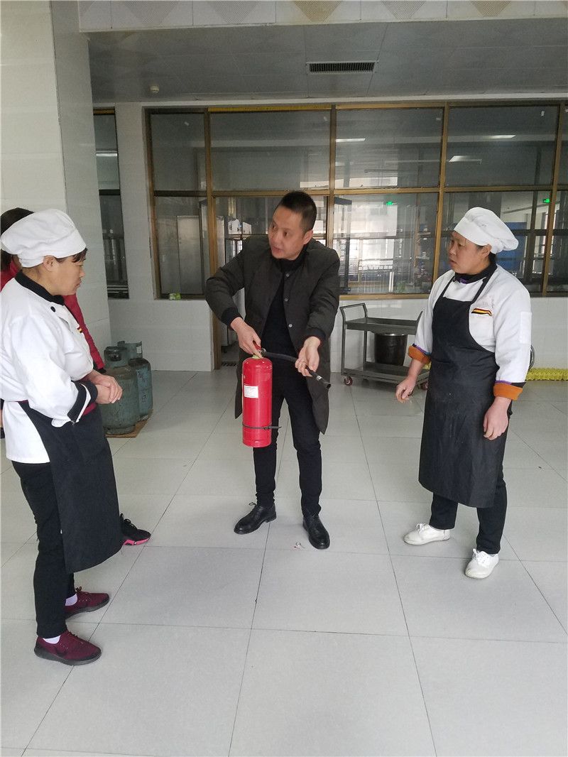 2、组织消防演练,提高处置能力。3月1日下午,膳食处组织餐厅全体工作人员进行了消防应急演练。在演练过程中,由专业消防人员为餐厅工作人员详细讲解了最新的消防法律法规、日常防火常识、日常火情处理办法、火灾中的逃生技能及灭火器的正确使用方法,餐厅工作人员按照讲解一一做了操作演练。通过演练,餐厅全体工作人员掌握了日常防火知识和技巧,提高了处置能力。