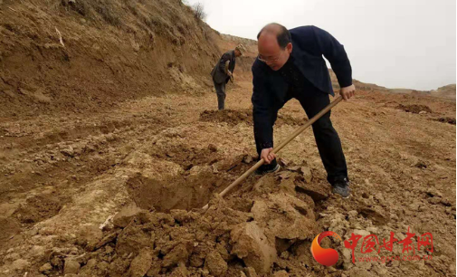 帮助种植花椒的村民挖坑