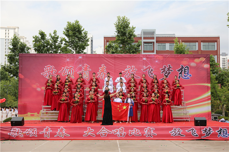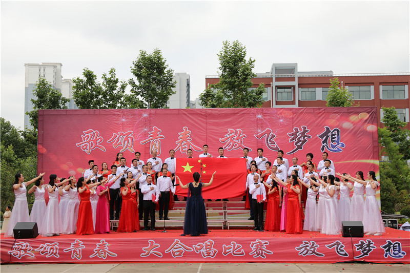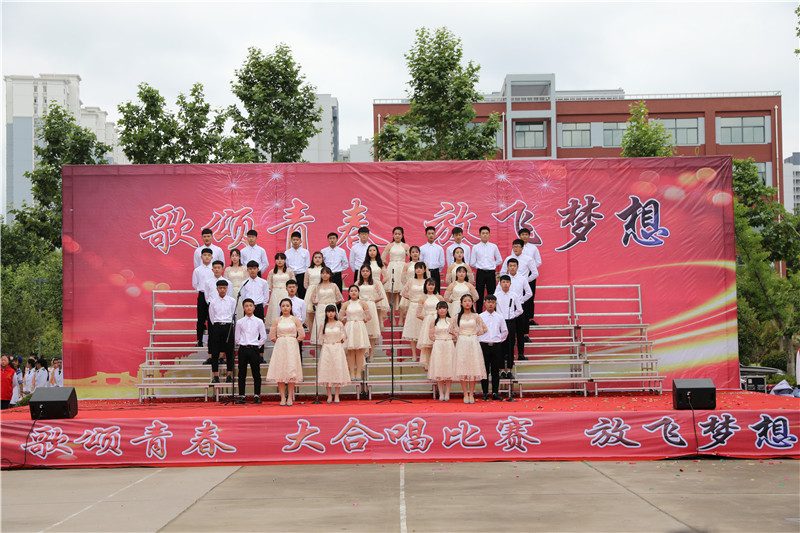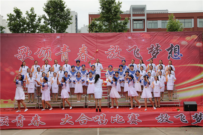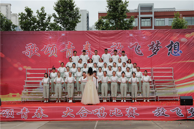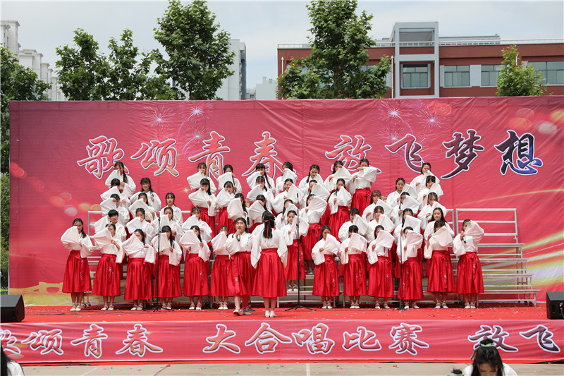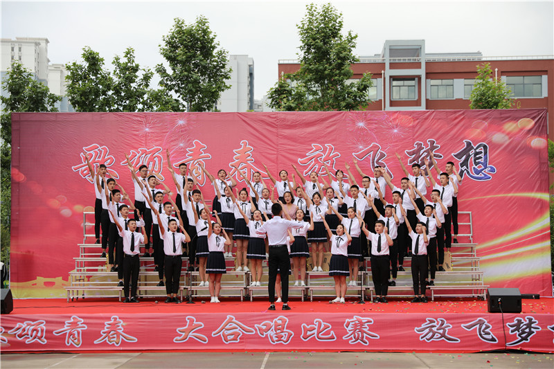 “歌颂青春 放飞梦想”大合唱,献给新的一天;献给亲爱的学校;献给坚守执着的职教人;献给伟大的祖国。