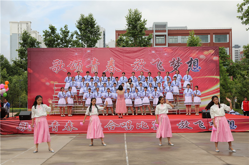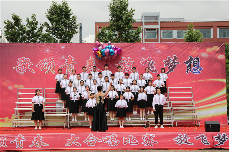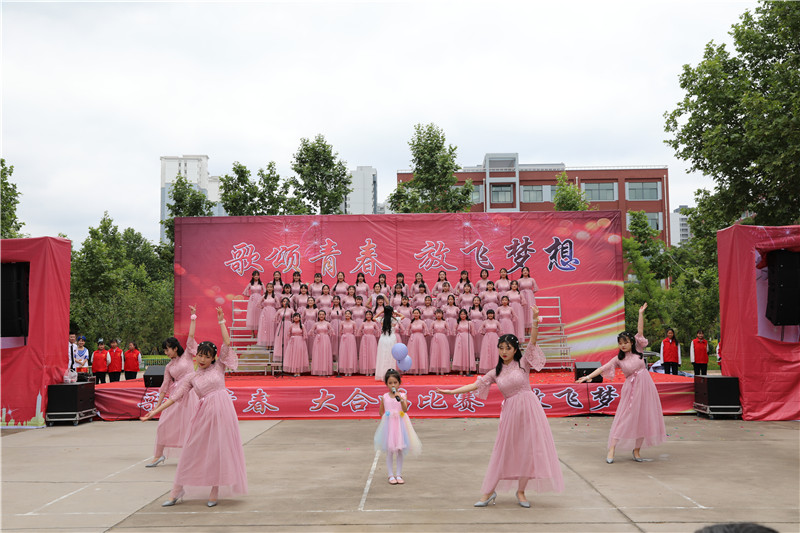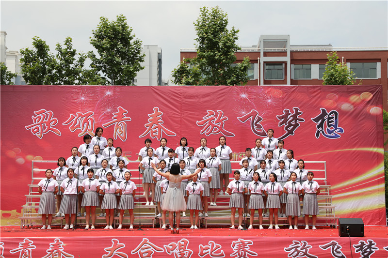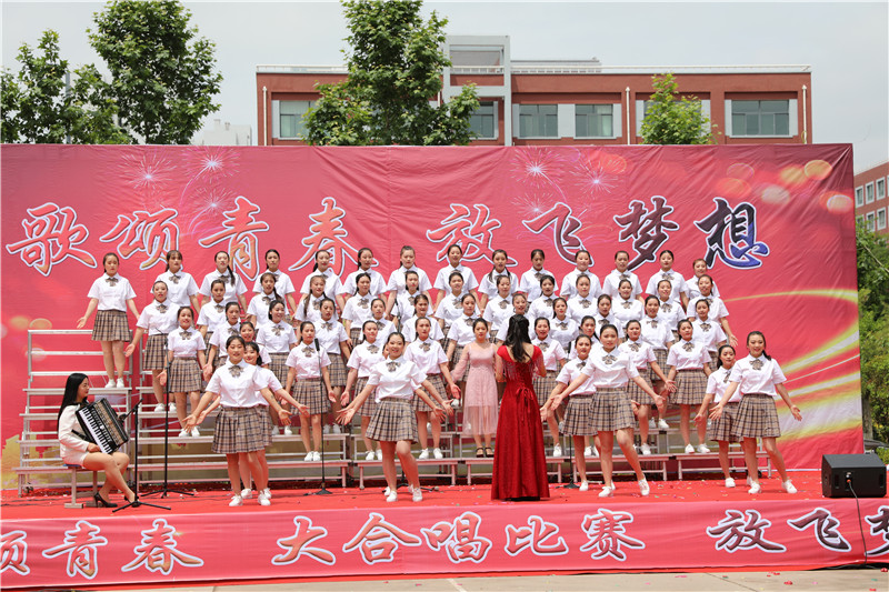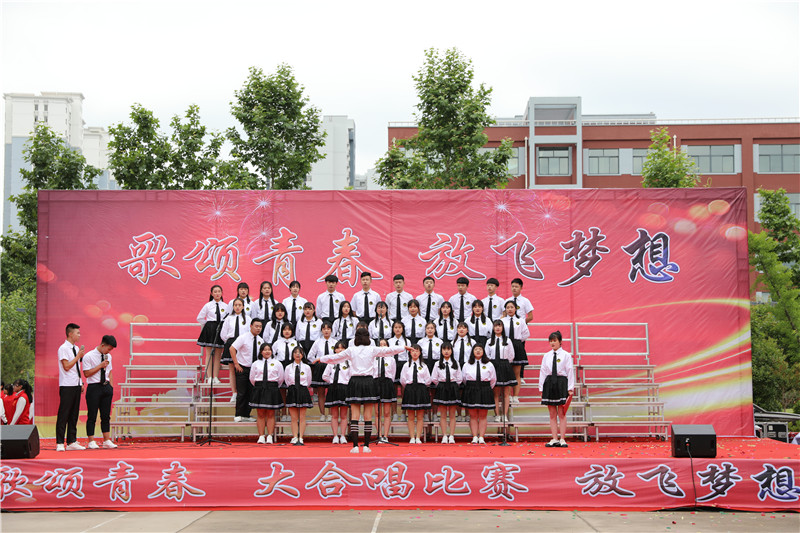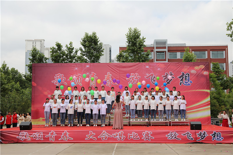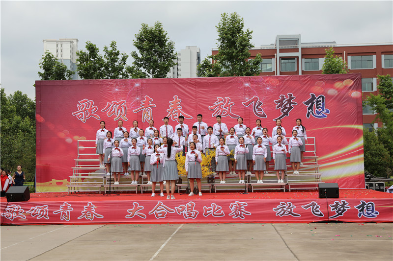 “歌颂青春 放飞梦想”大合唱,献给新的一天;献给亲爱的学校;献给坚守执着的职教人;献给伟大的祖国。