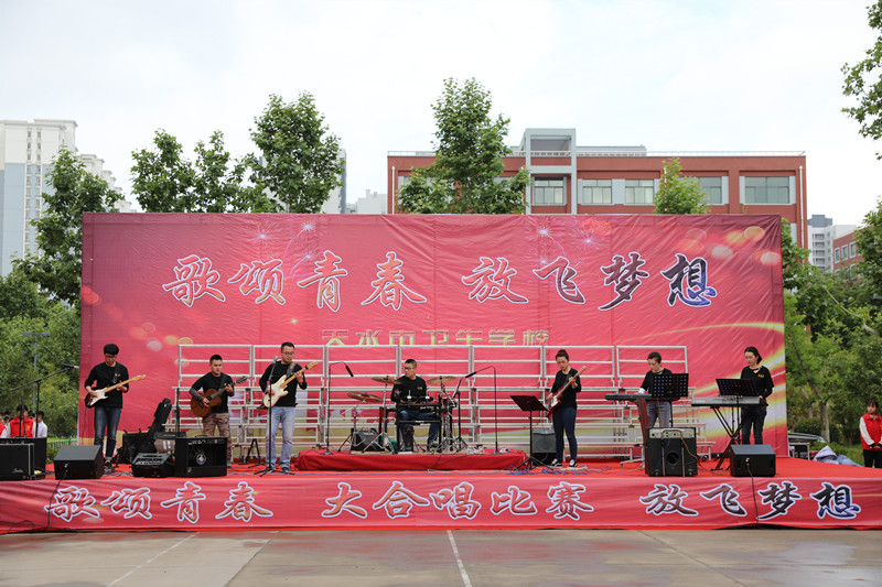 5月28日上午八点半,为庆祝新中国成立70周年,全面展现新时代职业教育优良风貌,“歌颂青春 放飞梦想”师生大合唱隆重上演。学校教工乐队激情演绎了《活着》、《友情岁月》、《那一年》、《光明》四首歌曲,比赛在高亢的旋律和欢腾的海洋中拉开序幕。