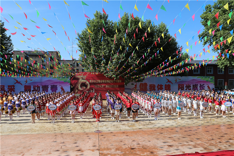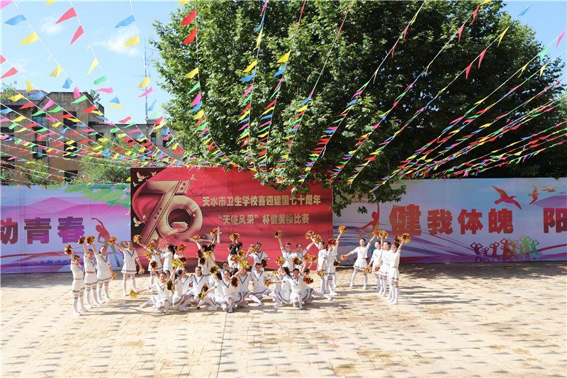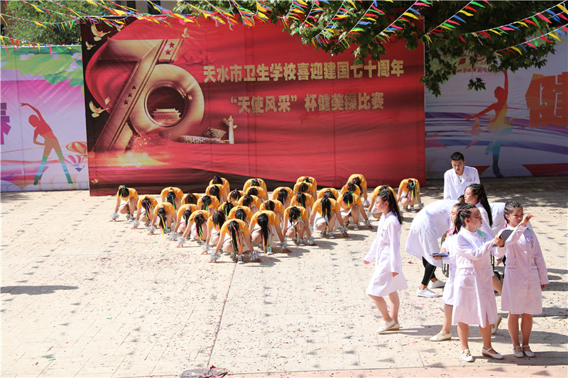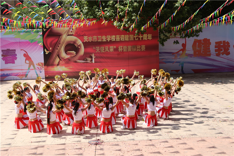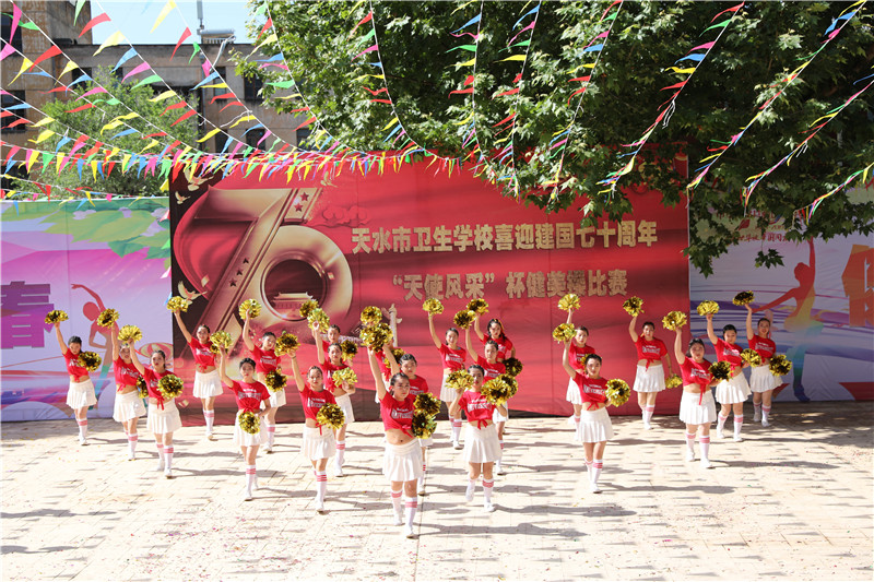 本届比赛,2018级全体同学赛出了风格,赛出了水平,展现了团结、健康、活泼、向上的良好精神风貌,更展现出了新时代青少年青春激扬的风采。伴着祖国华诞动人的音符,踩着青春奋进的步伐,本次喜迎建国70周年 第八届“天使风采杯”健美操比赛取得了圆满成功,卫校学子为祖国展示出生机昂扬的斗志、挥洒出祝福的汗水,也为我们奏响了庆贺祖国70华诞的恢宏号角。