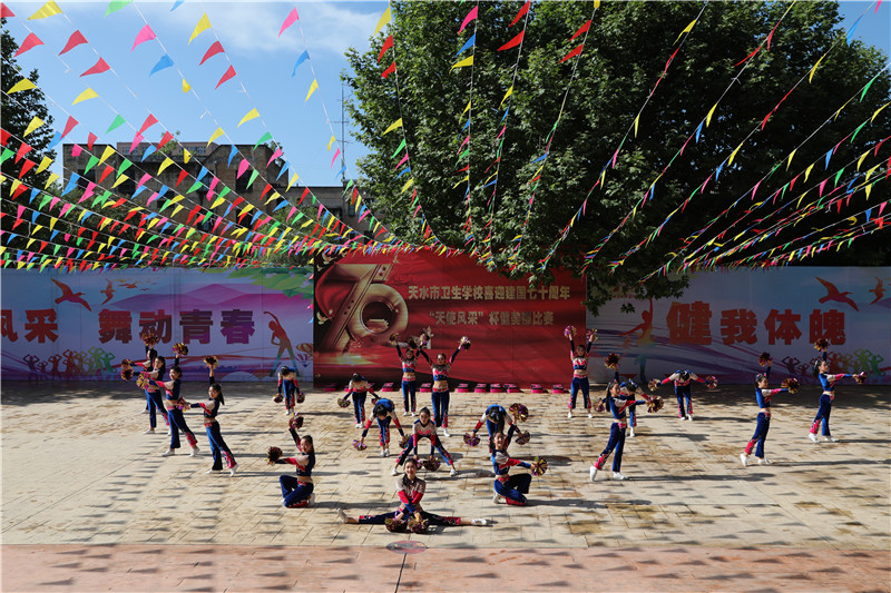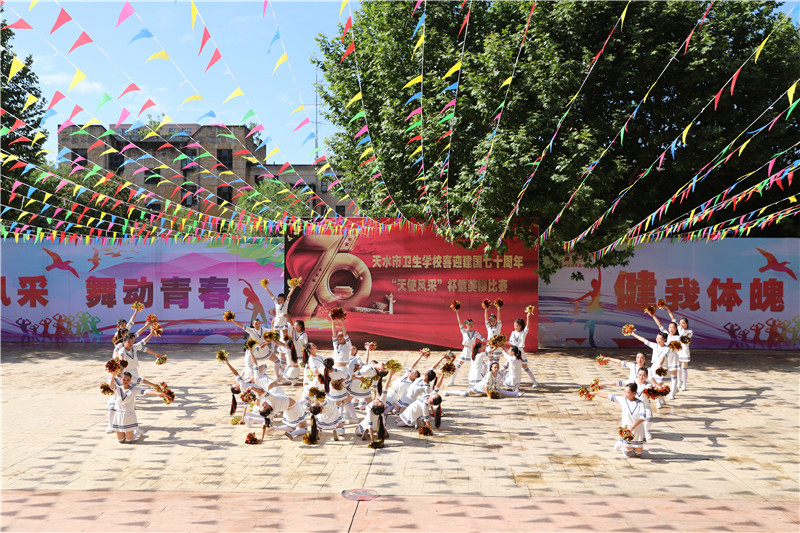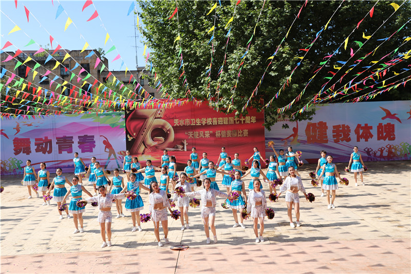 赛场上,选手们身着五彩斑斓的服装,踏着动感奔放的音乐,完成了一套套构思巧妙、明快活泼的动作,用舞姿诠释了青春的律动,用热情编织了青春的浪漫,完美展示了力与美的结合。选手们尽情展现着形体美、韵律美、气质美,青春活力与优雅蕴藉交相辉映,鸟雀欢歌,蓝天白云,青春学子,掌声雷动,整座校园沉浸在欢腾的海洋中。学子们意气风发,激情昂扬,在青春的舞台上展示了新时代中职生良好的精神风貌,表达了对祖国的无限热爱和祝福。