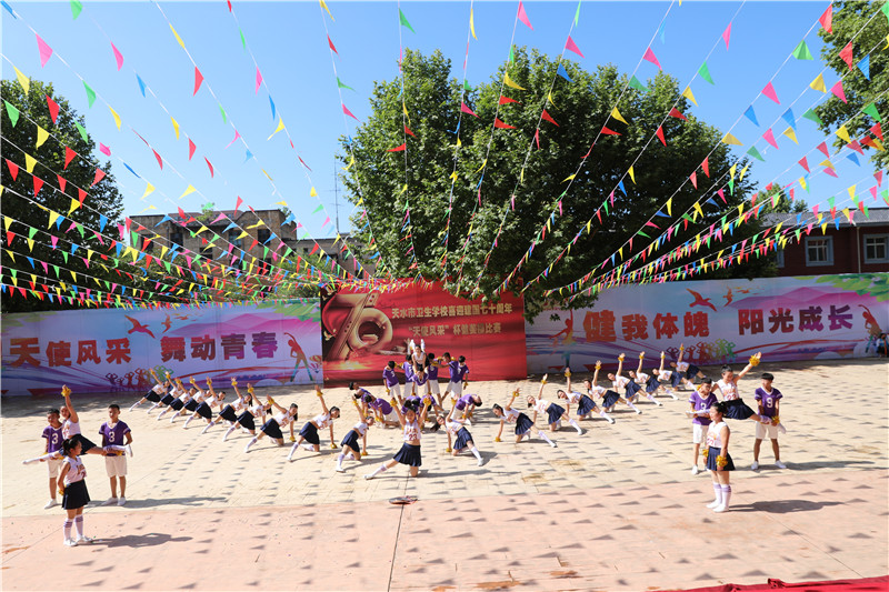 为进一步增强学生体质,全面推进阳光体育运动,丰富学生校园文化生活,创新我校德育载体,6月3日上午,学校成功举办了喜迎建国70周年第八届“天使风采杯”健美操比赛。校领导班子成员及全校3000余名师生参加了此次活动。
