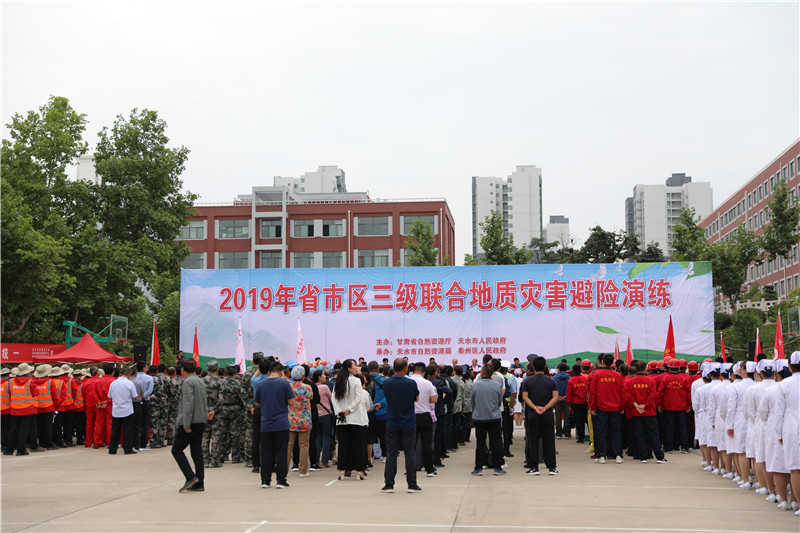 为进一步增强公民安全意识,提高公民紧急避险、自救自护和应变的能力,更好地应对严峻的地质灾害防治形势,掌握灾害来临时最有效的逃生方法,最大程度地减少地质灾害造成的损失,8月28日下午,由甘肃省自然资源厅和天水市政府联合主办,省自然资源厅地质灾害防治技术指导中心、天水市自然资源局、秦州区政府和我校联合承办的省市区联合地质灾害避险演练在我校成功举办。