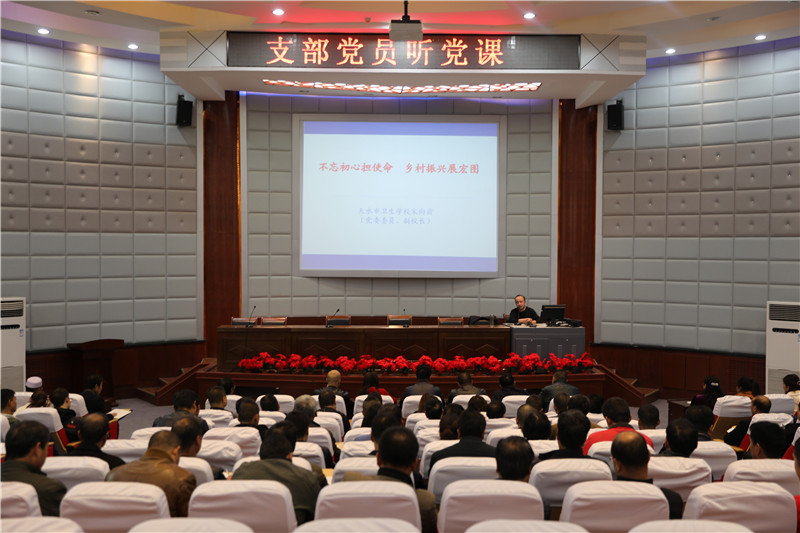 2019年10月25日下午,校党委委员、副校长宋向前同志在学术报告厅为乡村医生党员讲了以《不忘初心担使命,乡村振兴展宏图》为主题的党课,122名乡村医生党员和13名教务支部党员现场聆听。