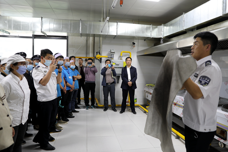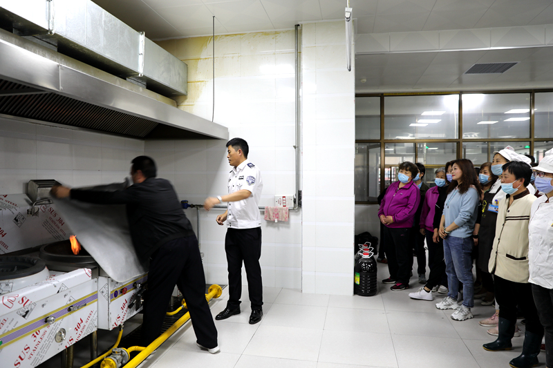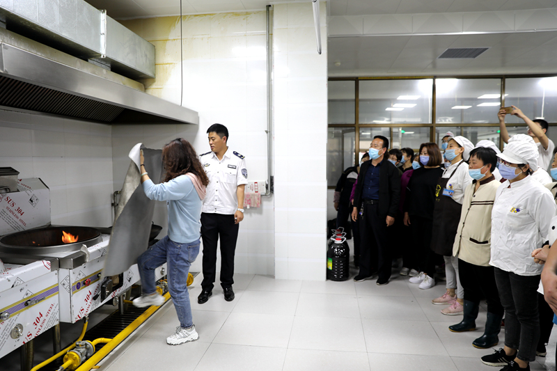 知识讲解和案例展示之后,全体人员到餐厅、学生公寓、教学楼、实验楼等场所进行实地演练活动。最后,全体保安人员在教学楼消防中控室学习了消控主机的使用和故障排除方法。
