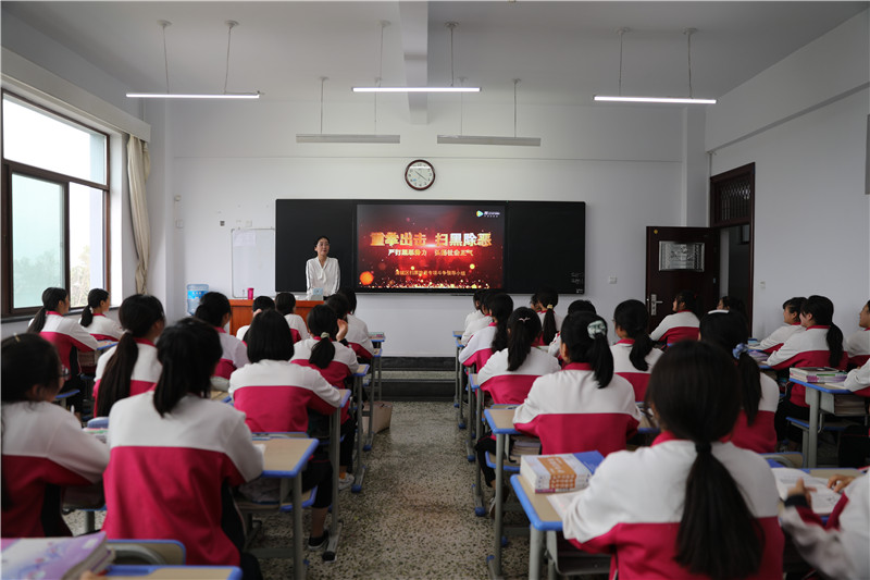 二是组织开展“扫黑除恶”主题班会活动。班会上,班主任们就一些基本的法律知识以及现阶段学生容易受到的伤害给大家作了介绍,并向学生们告知黑恶势力、违法犯罪给社会带来的危害,积极宣传打击黑恶势力和违法犯罪的重要性。同学们围绕应该如何做遵纪守法好公民、如何利用法律保护自己等内容积极展开了讨论,大家从中学到了很多法律知识。学校向全体学生发放《致家长的一封信》,向家长和社会宣传依法严惩黑恶势力理念,共建和谐家园。