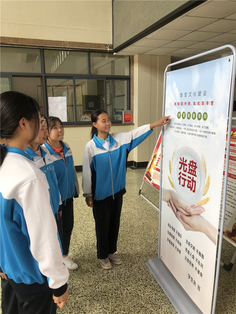 学校在加强爱粮节粮教育宣传的同时,引导广大师生适量点餐,自觉抵制铺张浪费,理性消费,合理配餐,不讲排场不搞攀比。