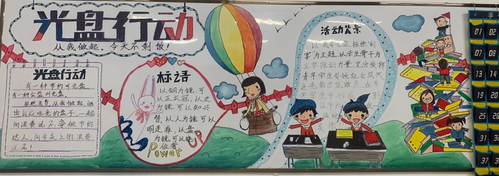 各班级制作“厉行节约、反对浪费;光盘行动、从我做起”主题板报,并开展年级评比。