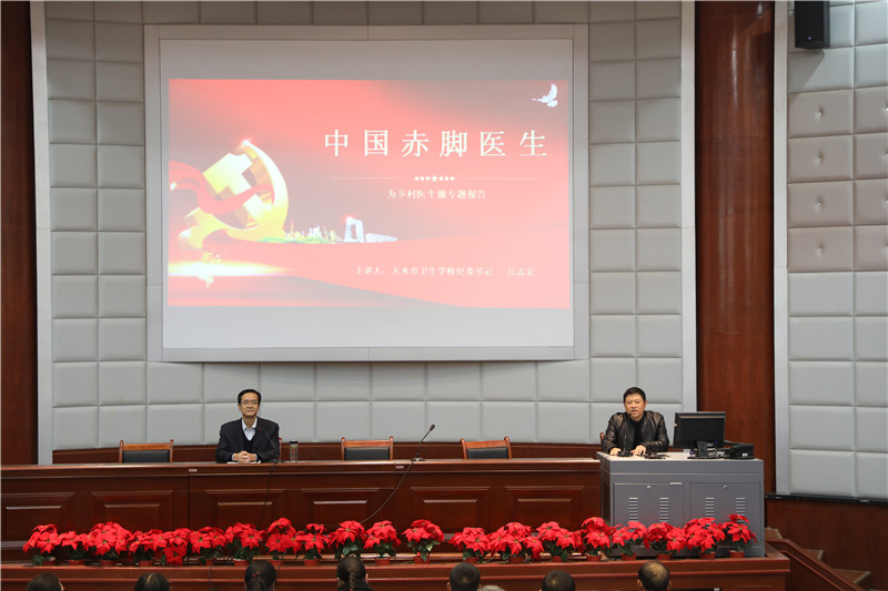 11月13日下午,学校纪委书记吕志宏同志在多功能厅为乡村医生作了《伟大领袖毛泽东的“六二六”指示催生了中国“赤脚医生”》的专题报告。培训班班主任及全体乡村医生学员200余人聆听了报告。