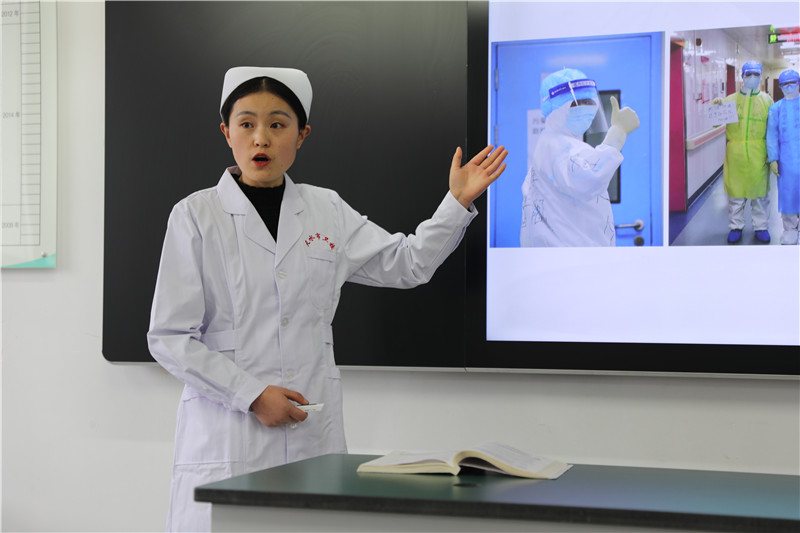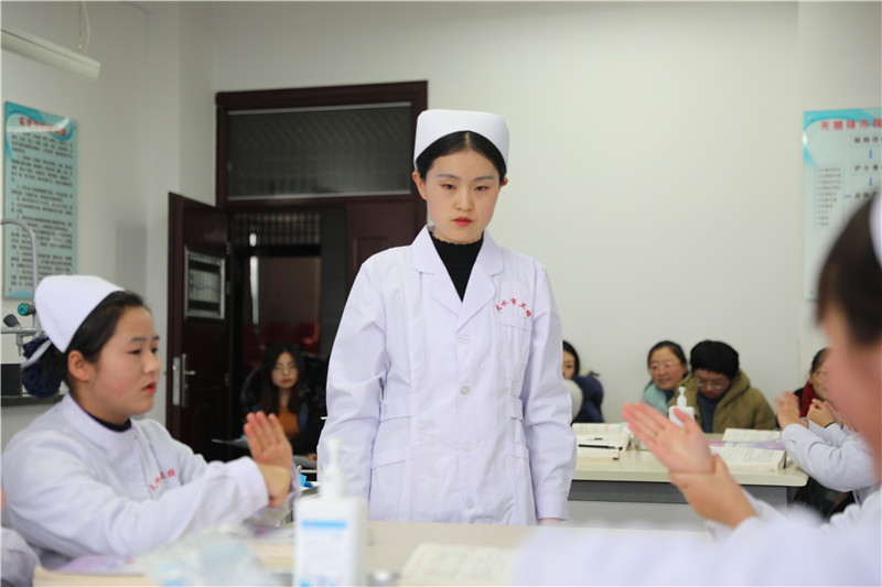 11月24日下午,我校组织了由青年教师承担的“青蓝工程”汇报课教学活动。常倩倩老师在实验楼603教室就护理学科中《隔离技术》的教学内容进行公开教学。校领导及部分教师约100余人观摩教学并参加了课后的评课活动。