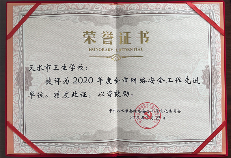 3月24日,全市网信工作会议召开。会议传达了全国网信办主任会议、全省网信工作会议精神,宣读了市委书记、市委网络安全和信息化委员会主任王锐同志对全市网信工作的批示,总结了2020年全市网信工作,安排部署了2021年重点工作任务,表彰了2020年网信工作先进县区、单位和个人,县区和市直单位代表进行了交流发言。我校荣获全市2020年度网络安全工作先进单位。