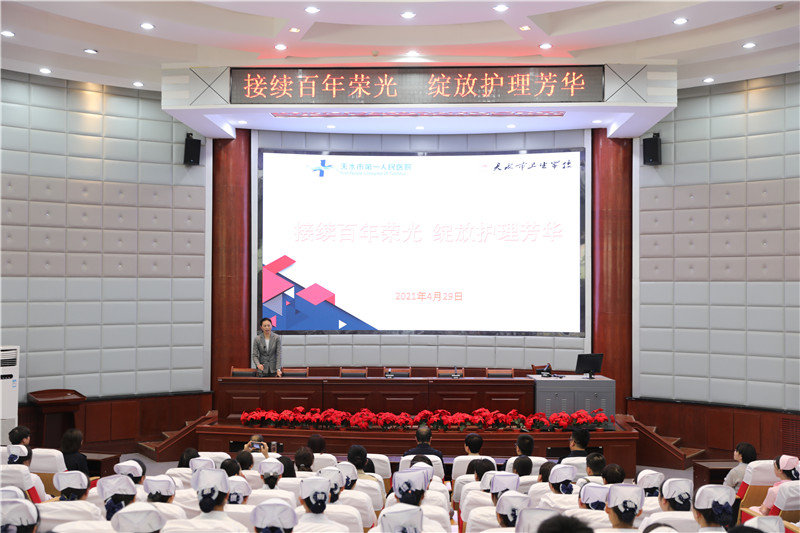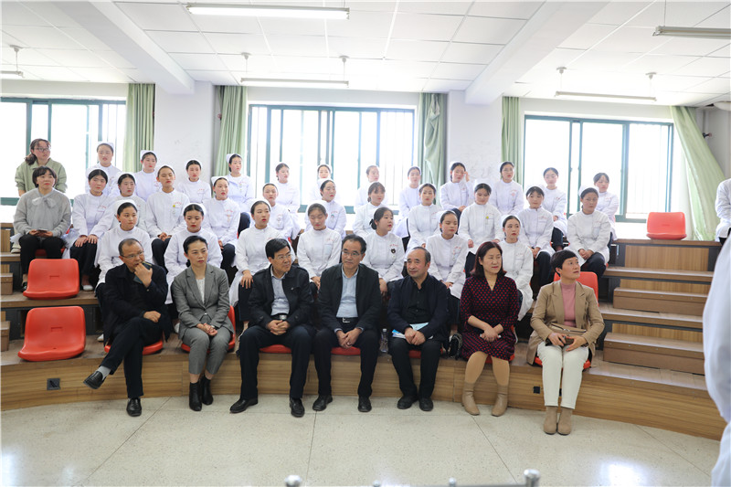 春夏之交,榴花似火、生机盎然,为纪念我国建党100周年、迎接第110个国际护士节,4月29日下午,市一院“接续百年荣光、绽放护理芳华”为主题的“院校携手,共话健康”活动走进我校。校长毛如君、副校长宋向前,市护理学会理事长、市一院护理部主任靳琦及该院7名护理专家,我校教务支部党员、护理教研室全体教师及学生代表200多人参加了活动。