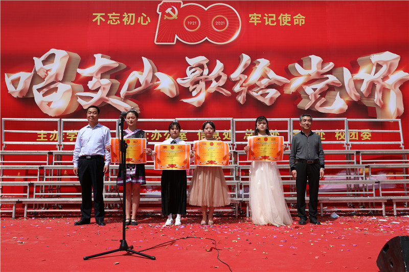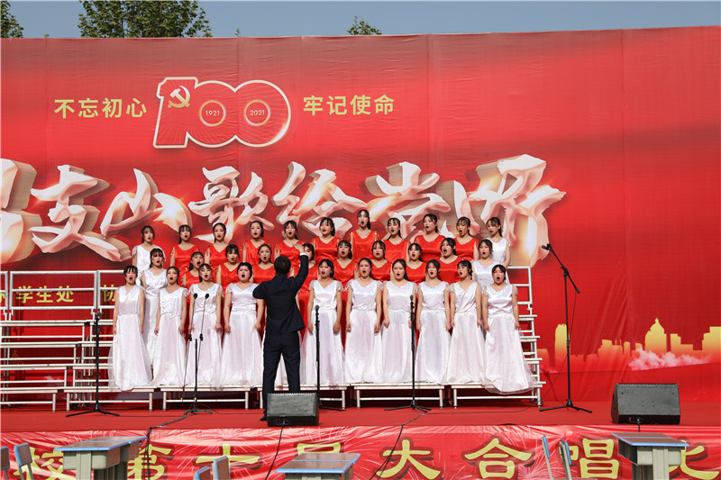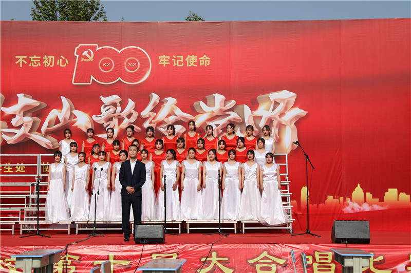 为了热烈庆祝中国共产党建党100周年,奋斗百年路,启航新征程,丰富校园文化生活,展现我校学生朝气蓬勃、团结协作、积极进取的风采,唱响爱国主义旋律,实现美丽的中国梦。我校于4月30日上午在校排球场举办了以“唱支山歌给党听”为主题的大合唱比赛,参加此次比赛的是2019级的所有学生。