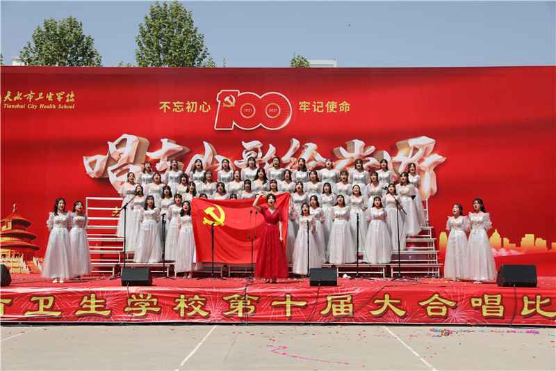 首先,学校合唱团以《天水市卫生学校校歌》和《太行山上》两首歌曲拉开了帷幕,学员们用热情饱满的歌声唱响了整个校园,带给所有人振奋的激情。