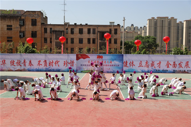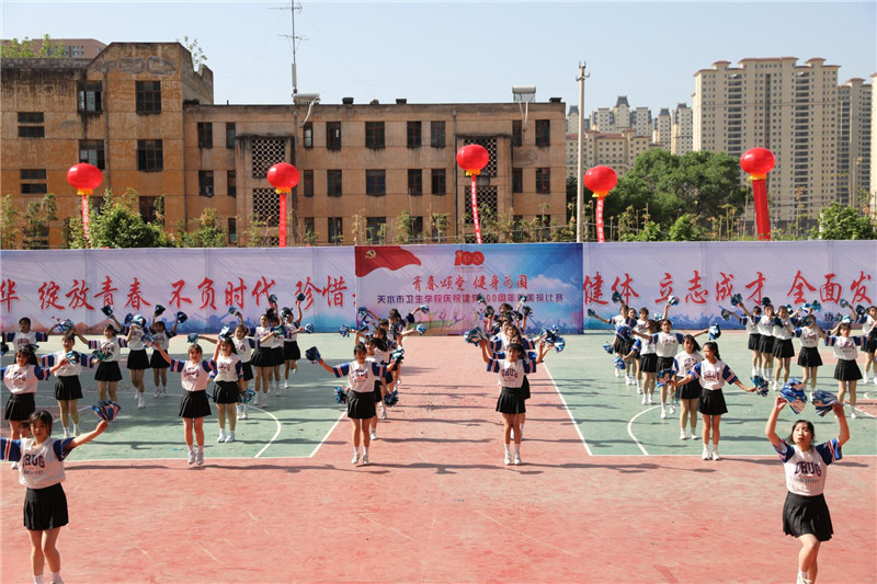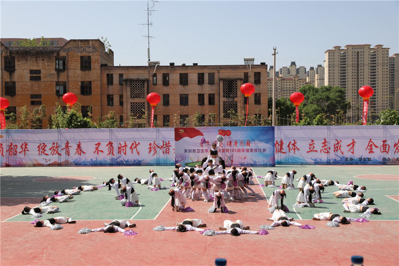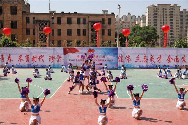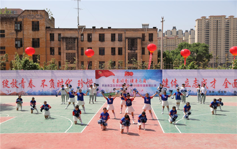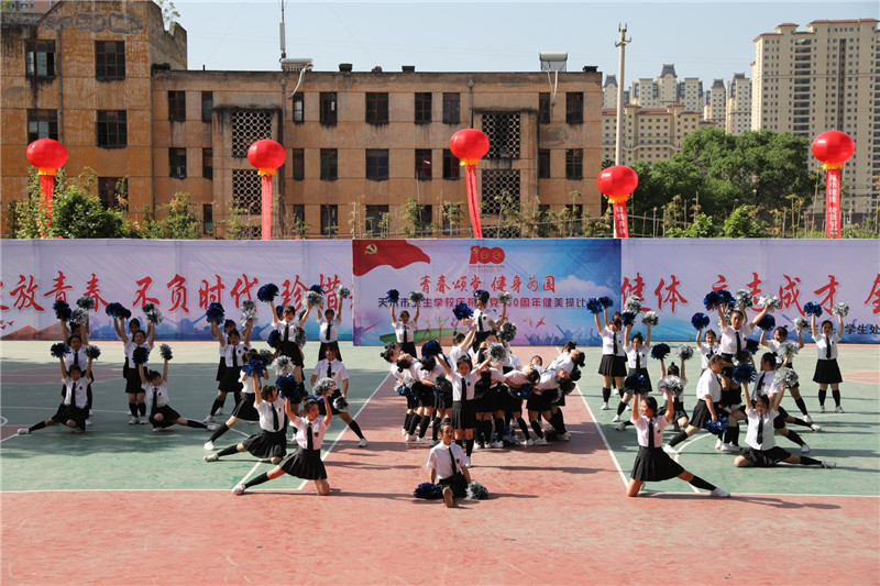 为热烈庆祝建党100周年,弘扬民族精神,培养学生的集体主义荣誉感,促进学生身心健康,丰富校园文化生活,我校于2021年5月8日上午举办了以“青春颂党,健身为国”为主题的健美操团体比赛。