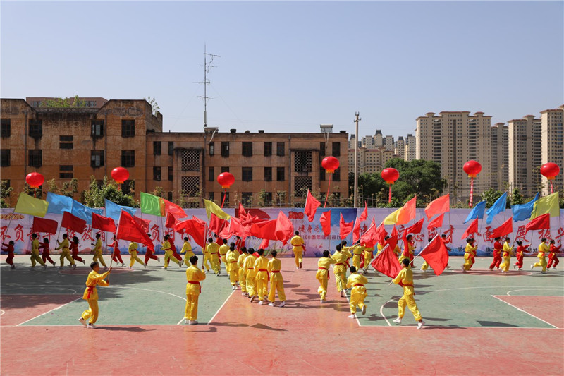 初夏的早晨艳阳高照,校园里鸟语花香,彩旗飘扬,全校师生兴高采烈,齐聚广场,健美操比赛在高亢激昂的国歌声中拉开了帷幕。在运动员进行曲中各班队员身着艳丽的服装,迈着自信而矫健的步伐,精神抖擞的依次入场,宋继凯副校长宣布比赛正式开始后,各班上场表演。在欢快的旋律中,同学们如惊鸿,若游龙,表现活力四射,动作整齐流畅。各班级经过精心的编辑排练,展示风采,争得最好成绩。那新颖的编排、明快的节奏、优美的律动无不给人以美的享受。比赛组织顺畅有序,各班级你方演罢我登场,衔接紧凑,观看的师生喝彩连连,整个比赛场面气氛热烈。
