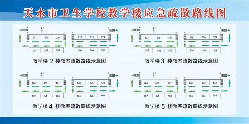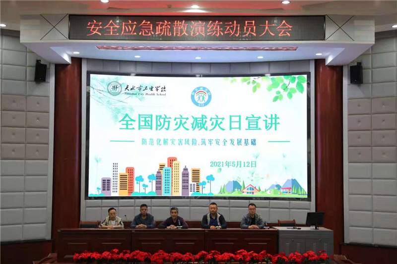 4月下旬,学校就开始进行有关防灾减灾的安全教育活动,制订了《天水市卫生学校安全疏散演练方案》,成立了以校长毛如君任组长、领导班子成员为副组长、各职能科室主任为组员的应急疏散演练领导小组,成立了现场指挥组、紧急疏散组、伤员救护组、外围控制组、通信联络组,明确分工职责,确定各环节责任人。规划了教学楼各班级疏散逃生路线,绘制和公布了全楼疏散路线示意图,对相关工作人员、班主任和学生干部进行了前期培训。