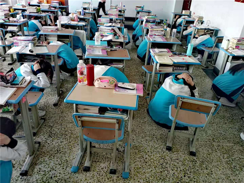 会后,进行了安全应急疏散演练。演练活动假设发生地震灾害,随着统一指令的发出,各班班主任首先指挥本班全体学生迅速用书包等物遮挡头部,在课桌下紧急避险。第二声指令发出后,各班级学生在班主任的指挥下,双手抱头,沿教室外走廊墙壁按规定疏散路线,依次迅速有序地撤离教学楼,到达前广场安全区域集合,各班班长向集合指挥莫凡主任报告了人数。整个疏散过程不足3分钟,所有学生没有任何推搡、踩踏、拥挤、喧哗行为,基本达到了“安全、迅速、有序”的预期效果。