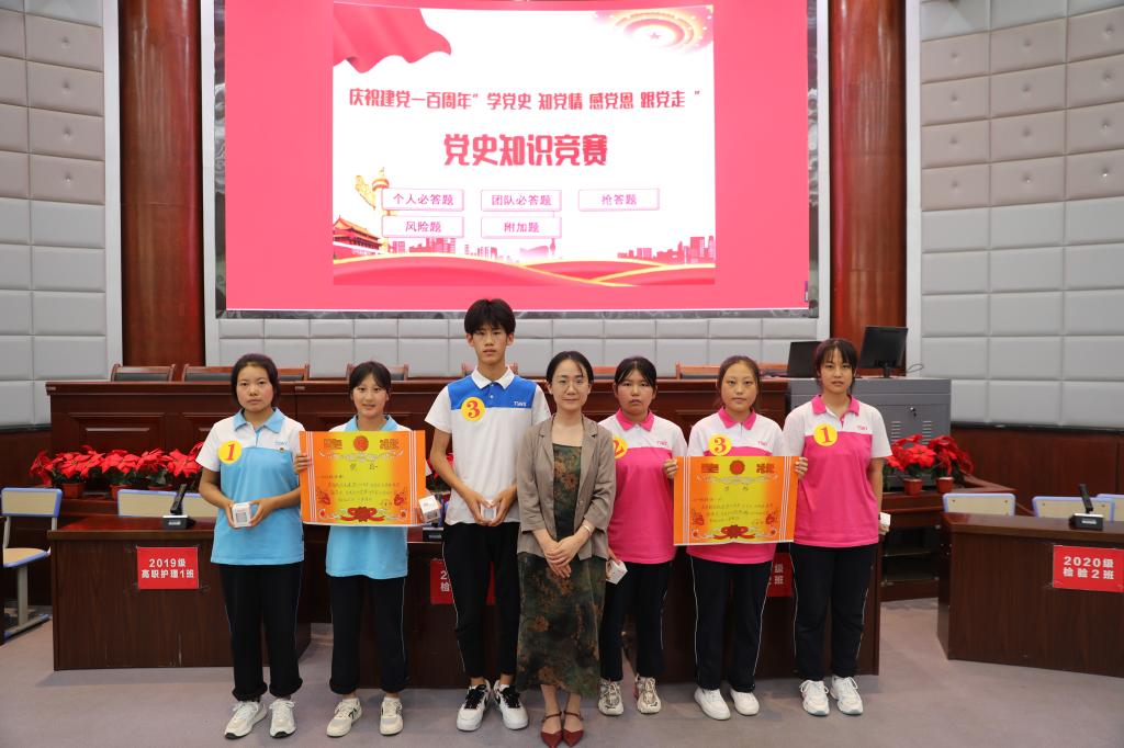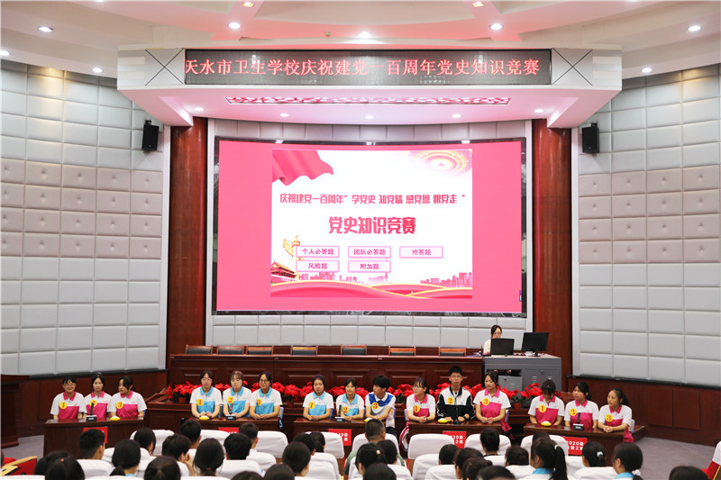 6月28日下午,天水市卫生学校庆祝建党一百周年“学党史 知党情 感党恩 跟党走”党史知识竞赛决赛在学术报告厅隆重举行,学校全体党员和学生代表共计一百五十余人观看本场比赛。