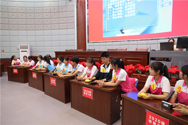 决赛分个人必答、小组必答、小组抢答和风险题四个环节。经过激烈角逐,2020级检验二班、2019级高职护理一班、2020级护理二班分别荣获一、二、三等奖,2019级检验班和2020级药剂二班获优秀组织奖,其中2020级检验二班选手兰耀烨在比赛中表现突出,荣获全场“最佳选手”。