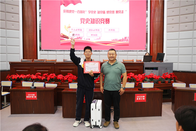 现场为获奖选手现场颁发了证书和奖品,并鼓励参赛选手要以本次比赛为契机,带领全班同学继续深入学习“四史”,在全校范围内掀起党史学习的新的热潮。
