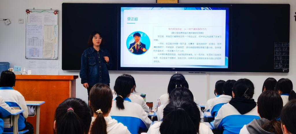 主题班会通过介绍邵思程、曾正超、梁智滨、张焕腾等优秀职业院校学生从网瘾少年、中考失利者逆袭到全国技术能手、世界技能大赛冠军,并不断努力深造考取研究生的奋斗之路,结合我校历届优秀毕业生就业创业的访谈视频,阐释了习近平总书记关于劳模精神、劳动精神、工匠精神以及技能人才工作的重要论述,帮助青年学生认识到“人生不是单行道”,引领学生树立学习自信,科学规划职业生涯,踔厉奋发,勇毅前行,争做不负于时代的新青年。