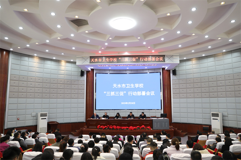 2月28日下午,天水市卫生学校“抓学习促提升抓执行促落实抓效能促发展”行动部署会议在学术报告厅召开,校党委班子成员和全体教工参加会议。会议由党委委员、副校长马有仓同志主持。