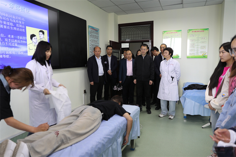 胡炜一行查看了我校学生公寓楼、餐厅和实训楼,仔细了解学生宿舍管理、餐饮环境和食品卫生等情况,深入调研少数民族学生就餐情况。随后查看了学校解剖、护理、药剂等实训室,重点关注了学校实验室器材和信息化建设情况。