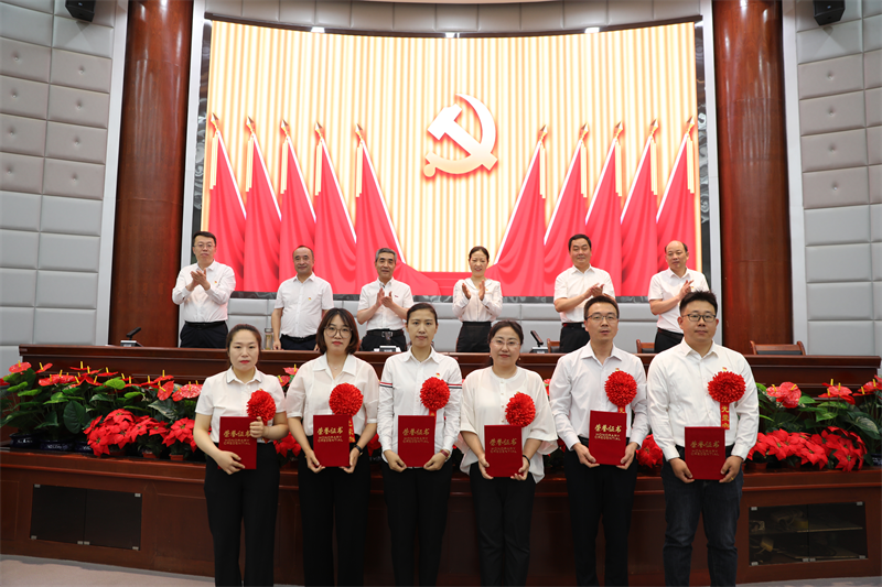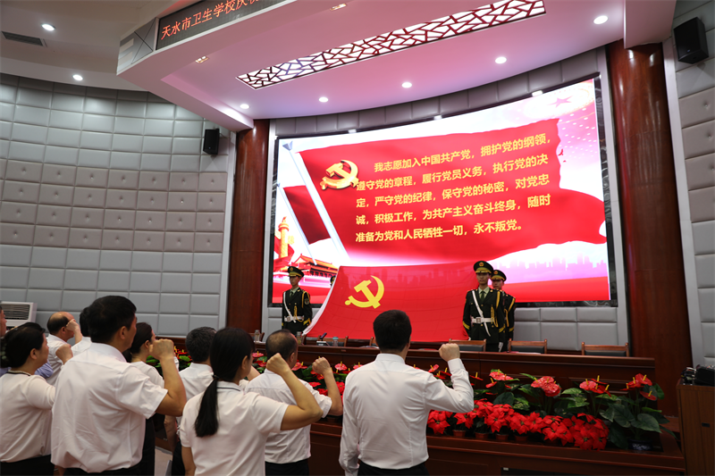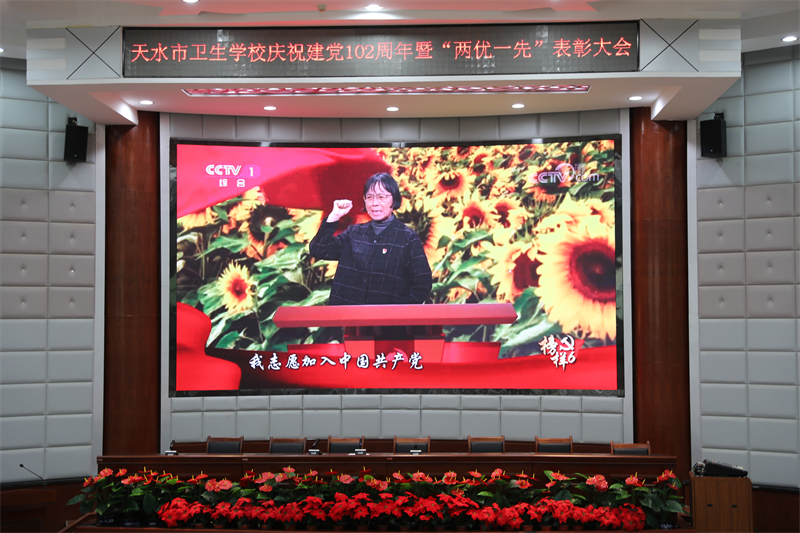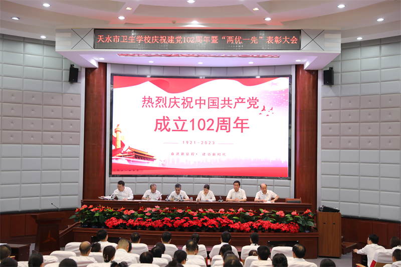 纪委书记雷晓军同志宣读了《中共天水市卫生学校委员会关于表彰2022-2023学年“两优一先”的决定》。优秀党员王海龙和优秀党务工作者马丽娟先后进行了发言,表示将荣誉转化为勇往直前的动力,继续保持谦虚谨慎、不骄不躁的作风,以更加坚强的党性、更加强烈的责任感和使命感踏实工作,再创佳绩。