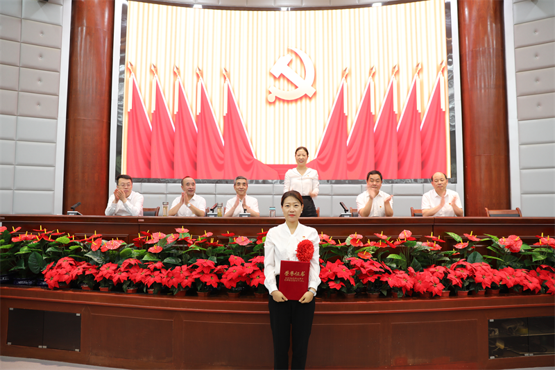 会议在雄壮的国歌声中拉开了序幕,全体党员重温了入党誓词。