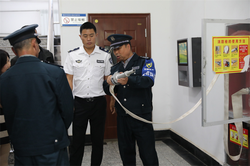 培训会后,全体人员进行了微型消防站和消防设施设备的使用演练。